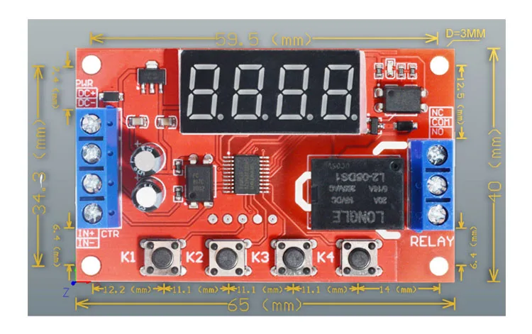El módulo de control de relé multifunción está especialmente diseñado para usuarios con diversos requisitos.Adopta el microcontrolador como unidad de control principal con 32 funciones preestablecidas.Los usuarios pueden utilizar las funciones específicas correspondientes de acuerdo con los requisitos reales.Se puede utilizar en control de bombas de agua, control de motores, control de correas de lámparas, control de válvulas de solenoide, etc.1.Nueva actualización, aumentando la cantidad de funciones del módulo a 32, para cumplir con más requisitos de aplicación.2.Función de conexión anti-retroceso de la fuente de alimentación, que no dañará el módulo debido a una fuente de alimentación incorrecta.3.Precisión de sincronización a 0,01 segundos.0,1 segundos (mínimo) ~999 minutos (máximo) opcional4.. Configuraciones de bajo ahorro de energía, puede apagar el área de visualización.Parámetros del producto:Nombre del producto: relé de retardo multifunciónNúmero V del relé: DC5V/12V/24Vopcional Voltaje de entrada:Versión de 5 V: fuente de alimentación DC5 V;Versión de 12V: fuente de alimentación DC12V;Versión de 24 V: fuente de alimentación DC24 VCarga de salida: CC 30 V, máx. 10 A.CA 250 V, máximo 5 A.Señal de disparo: versión 5V (nivel alto: 5V);Tanto los niveles bajos de 12 V (nivel alto: 12 V) como 24 V (nivel alto: 5 V) son 0 V.Corriente estática: 20mAcorriente de compensación: 60 mATemperatura de funcionamiento: -25℃-85℃Memoria de apagado: SíPeso del producto: ≈26 g,Tamaño del producto: 65 x 34,3 x 17,5 (MM)La medición manual es solo de referencia.El tamaño real está sujeto al objeto material. Consejos cálidos:1.Seleccione la versión V requerida (según la diferencia de identificación del relé anterior, el relé es una versión instantánea de 5 V de 5 V) para evitar compras incorrectas.2.La salida del relé es un contacto pasivo sin salida de corriente para controlar el efecto de encendido y apagado de una línea.3.Ingrese el voltaje del disparador estrictamente de acuerdo con la versión seleccionada.