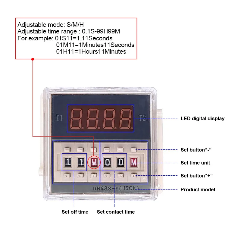 Comprar Relé de tiempo DH48S-S 12V, 220VAC 24VDC, Ciclo de repetición SPDT con enchufe DH48S series, temporizador de retardo con base