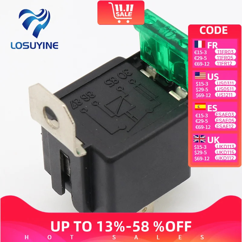 Mezcle relé automático 30A de alta calidad con fusible¡RELIGOS DE SUPER ALTA CALIDAD DE LA EMPRESA!CONTACTOS DE ALEACIÓN DE PLATA LO MANTENDE DE ALTA CALIDAD Y SE PUEDE BEAR MAX. ACTUAL 30A