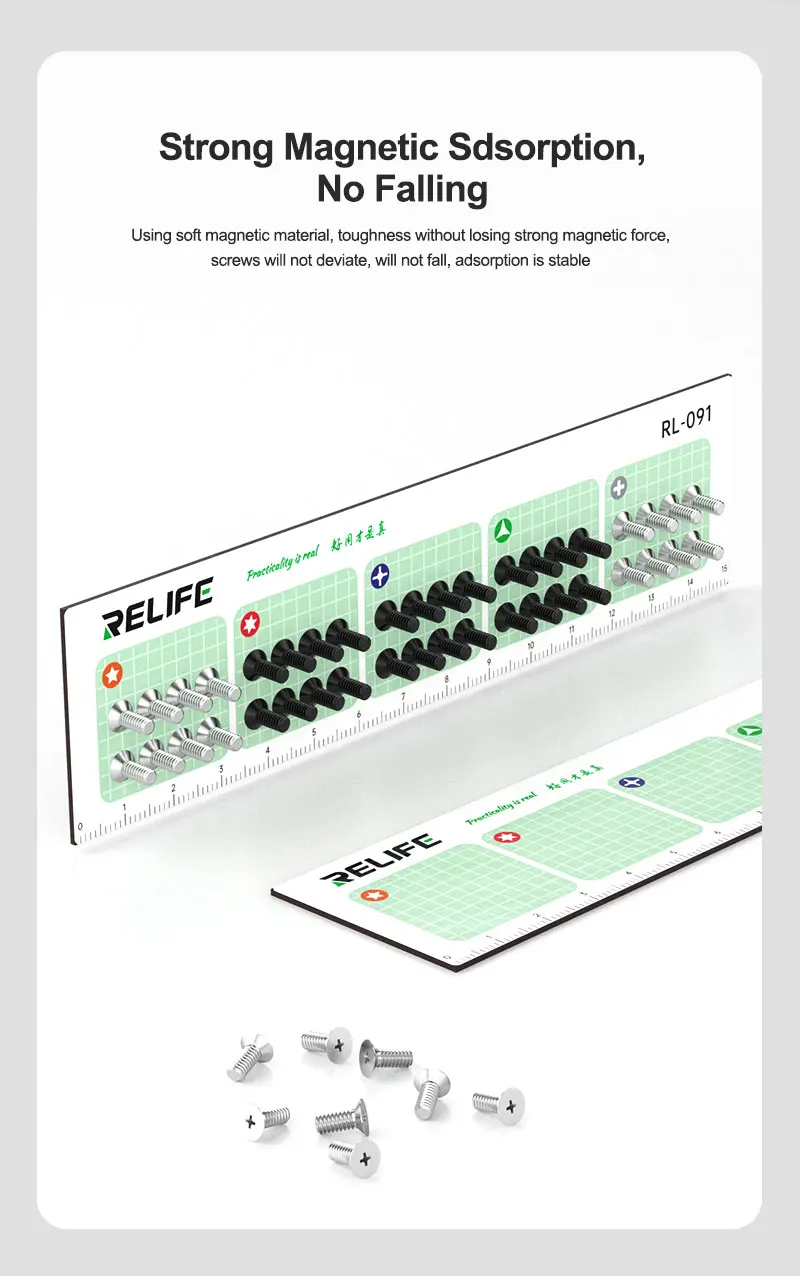 RELIFE RL-091 almohadilla de almacenamiento de tornillos de absorción magnética para reparación de teléfonos móviles alfombrilla de recolección de tornillos de regla de doble uso