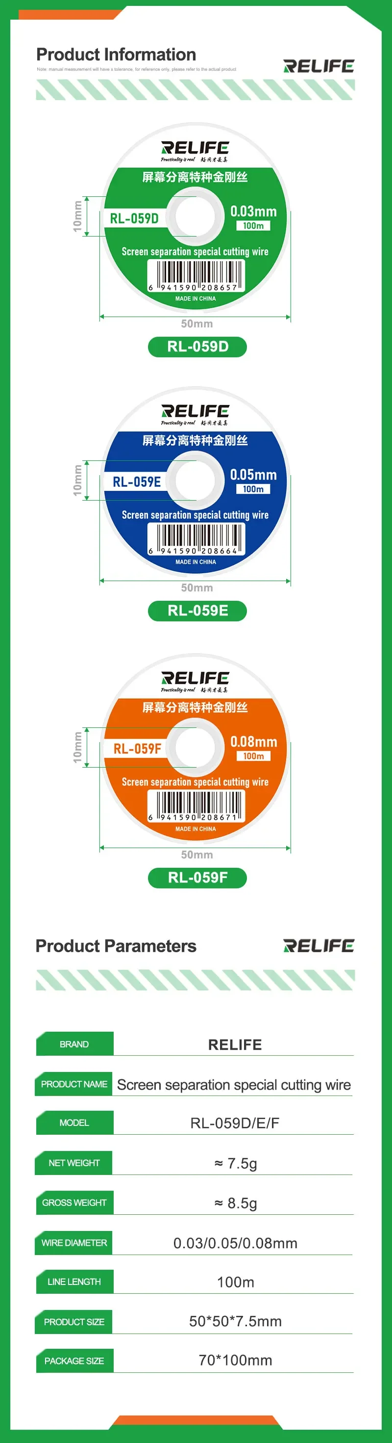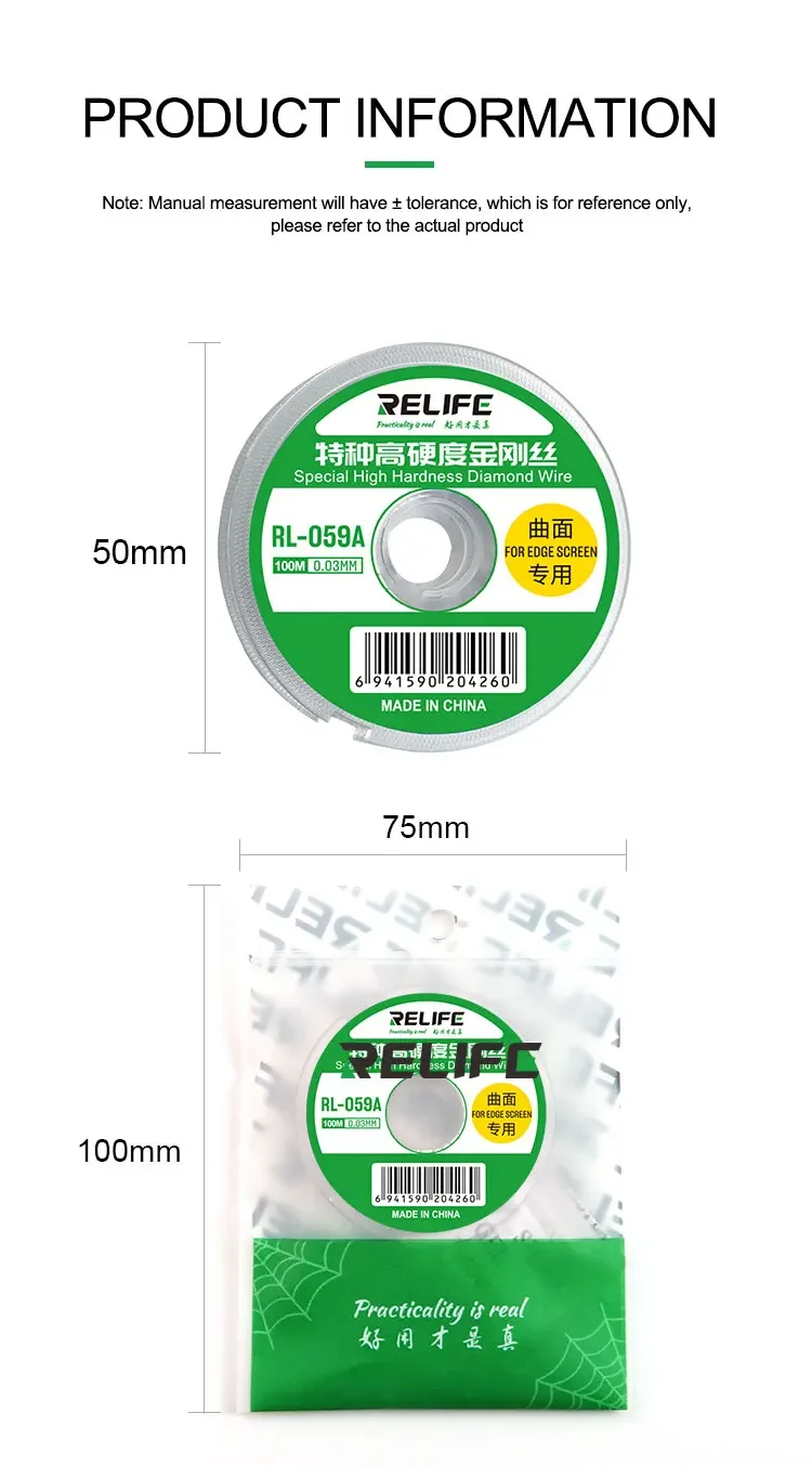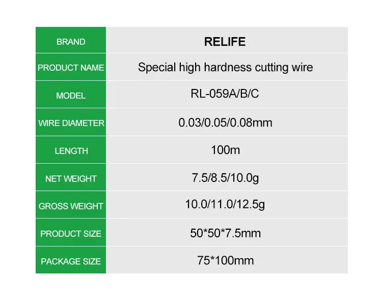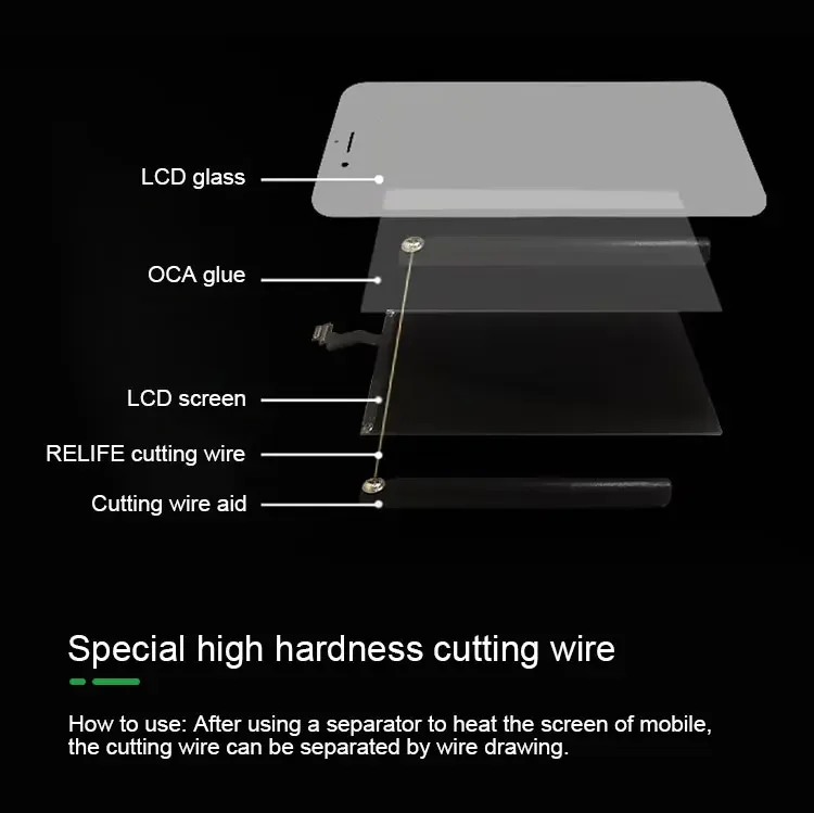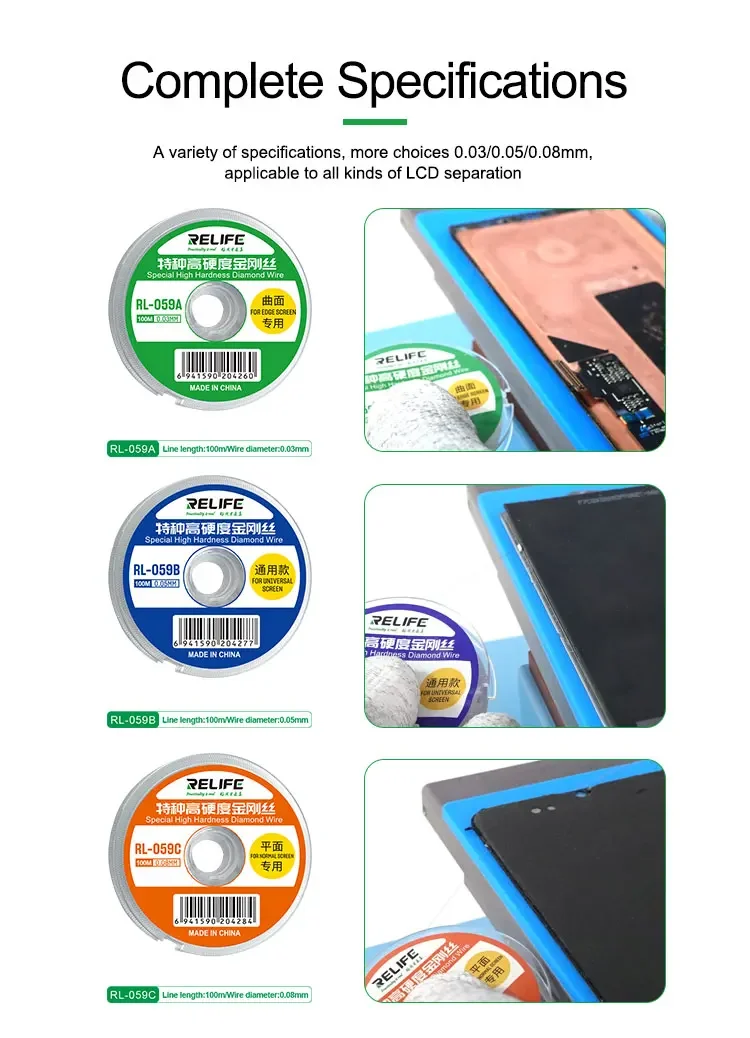 RELIFE-Cable de diamante de separación de pantalla para reparación de teléfonos móviles, herramienta de separación de pantalla LCD, 0,03/0,05/0,08 MM