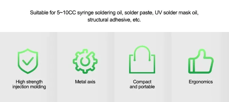 -Adecuado para aceite de soldadura de jeringa de 5 ~ 10cc, pasta de soldadura, aceite de Máscara de Soldadura UV, adhesivo estructural, etc.