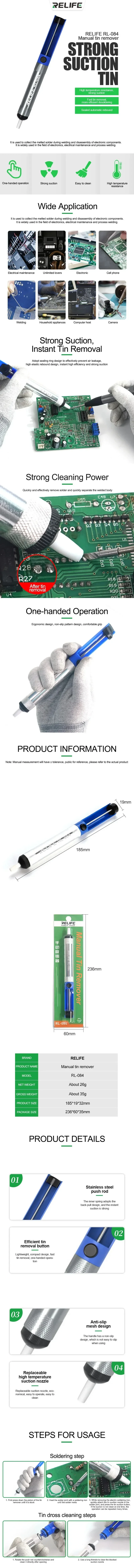 RELIFE-pistola de pasta de soldadura RL-084 Pro/Plus, herramienta de soldadura absorbente de estaño y eliminación, rebote automático, operación con una sola mano