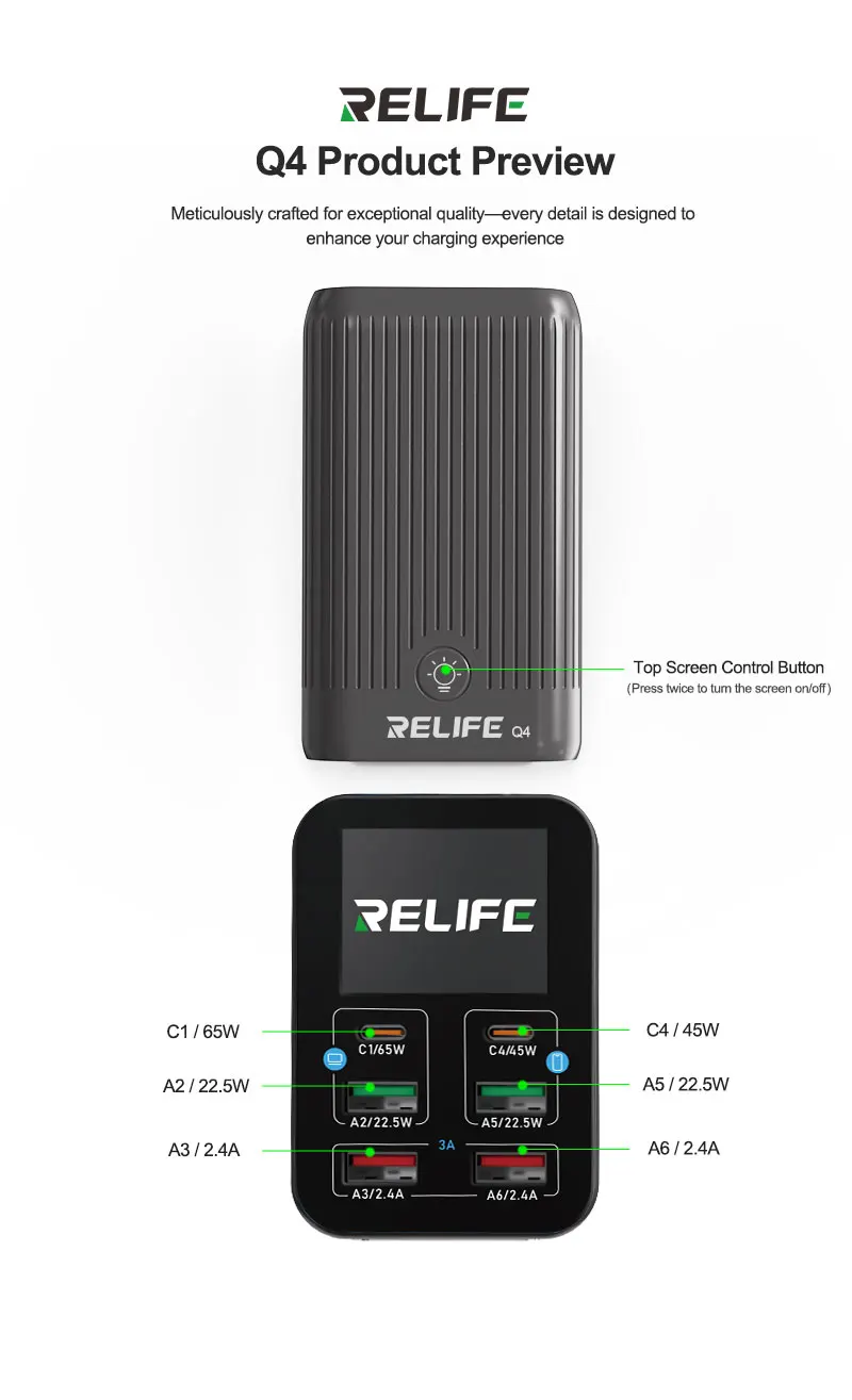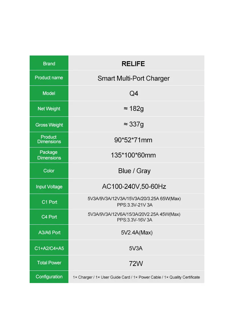 🔧 Cargador multipuerto inteligente RELIFE Q4: ¡encienda sus dispositivos más inteligentemente! 🔧