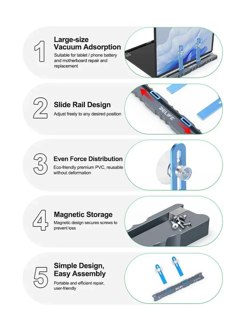 RELIFE RL-092 Adsorción de pantalla grande-Soporte estable Ventosa ajustable Soporte de riel deslizante de almacenamiento magnético Adecuado para tabletas, dispositivos móviles, montaje lateral/pantalla de fijación/desmontaje de batería/desmontaje de placa base