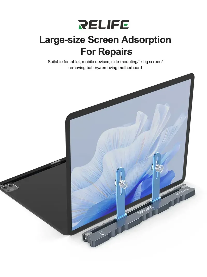 El soporte de reparación de pantalla RELIFE RL-092 Plus es la herramienta profesional definitiva para reparaciones de pantallas de tabletas y iPad.Este portaherramientas de reparación premium presenta un innovador diseño de riel deslizante que proporciona un movimiento suave y estable durante los delicados procedimientos de reemplazo de pantalla.El soporte de gran tamaño está especialmente diseñado para acomodar varias tabletas, ofreciendo una estabilidad perfecta para trabajos de reparación.