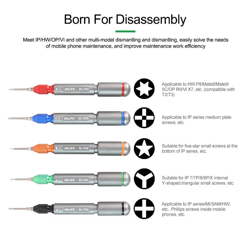 RELIFE RL-724A-destornillador de torsión para reparación de teléfonos móviles, alta precisión, desmontaje de pantalla, no daña la máquina
