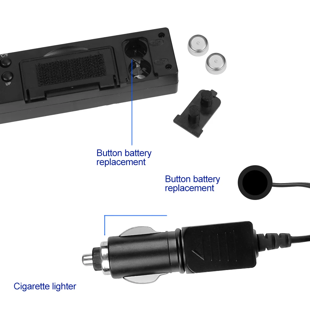 1. Visualización de temperatura interior y exterior, rango de medición: interior: 50--70℃,exterior:-50℃--70℃
