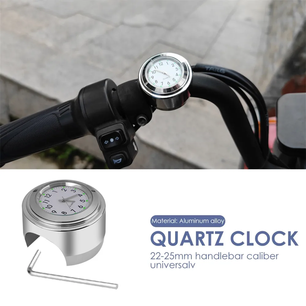 Reloj de cuarzo luminoso de aluminio, 22-25mm, motocicleta, Scooter, bicicleta, montaje en manillar, reloj con visualización de tiempo, accesorios de motocicleta