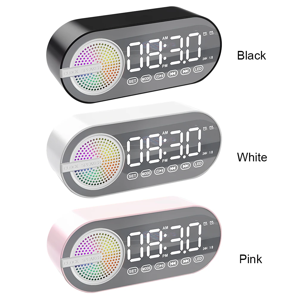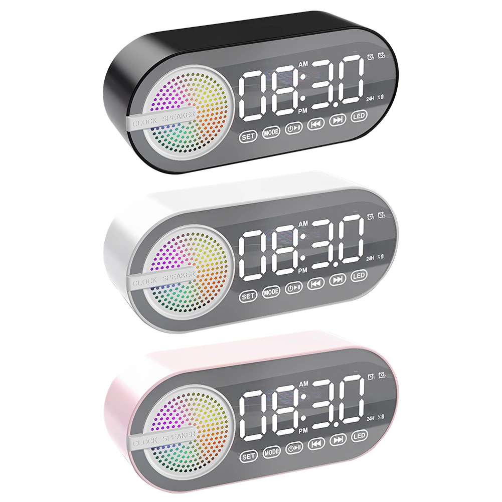 1. Funcionalidad versátil:Este reloj despertador con altavoz BT inalámbrico combina las características de un reloj despertador tradicional, visualización de la hora y altavoz BT.Se conecta a su teléfono u otros dispositivos a través de BT, brindando una experiencia musical de alta calidad junto con sus funciones estándar de cronometraje.