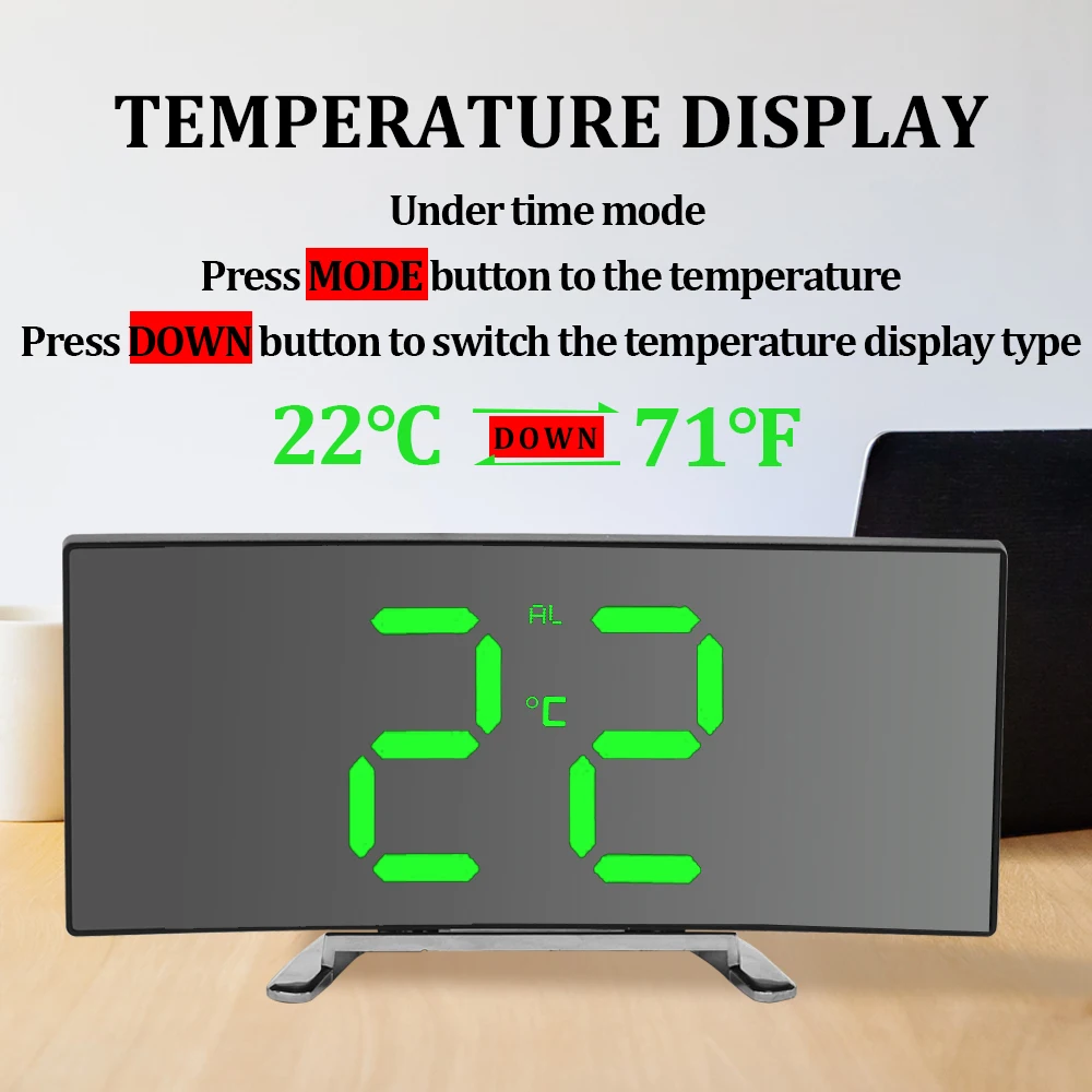 6.Pantalla LED curva: la pantalla curva puede brindarle una experiencia visual vertical e isométrica, y puede ver claramente la hora desde múltiples ángulos.
