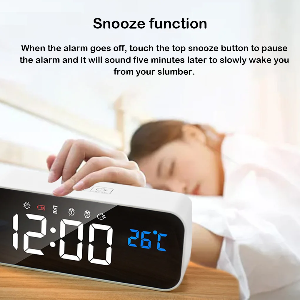 Comprar Reloj despertador electrónico Digital LED, dispositivo con Control de voz y temperatura, retroiluminación, espejo de escritorio, adornos