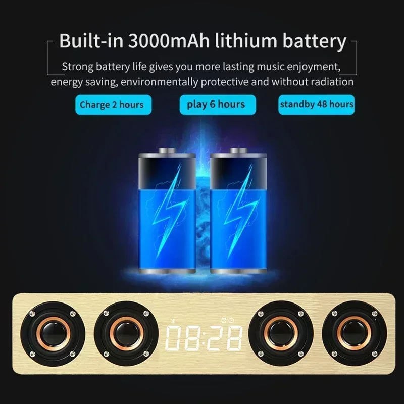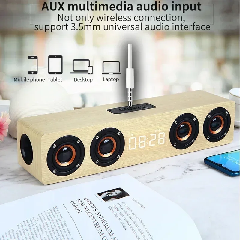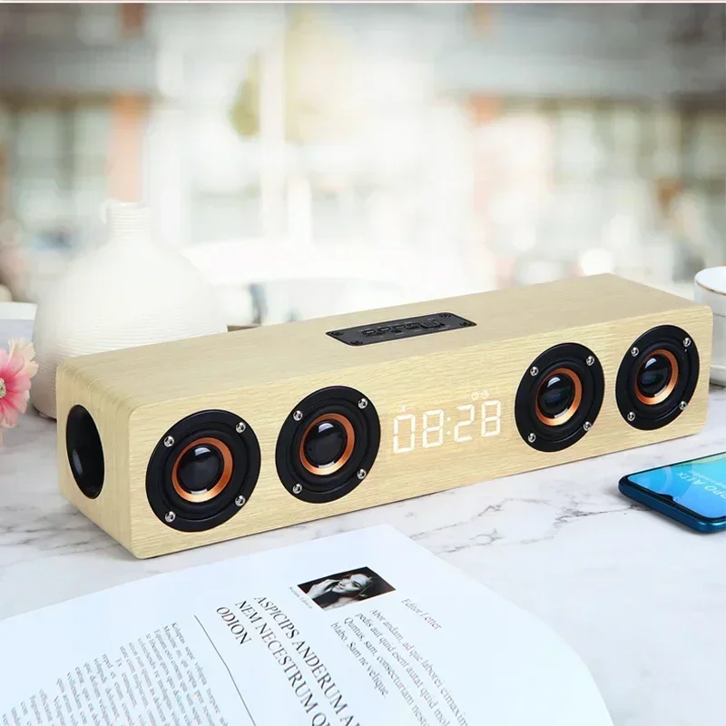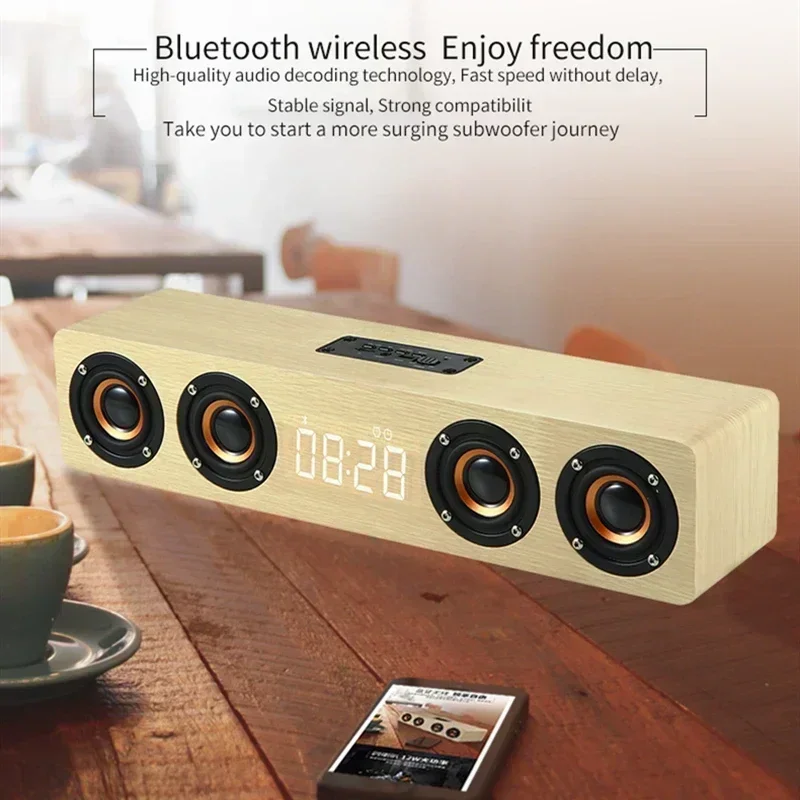 Altavoz Bluetooth de Madera de 20W, Barra de Sonido con 4 Altavoces, Echo de Pared para TV, Sistema de Sonido de Cine en Casa, Calidad de Sonido HIFI, Caja de Sonido para PC/TV.