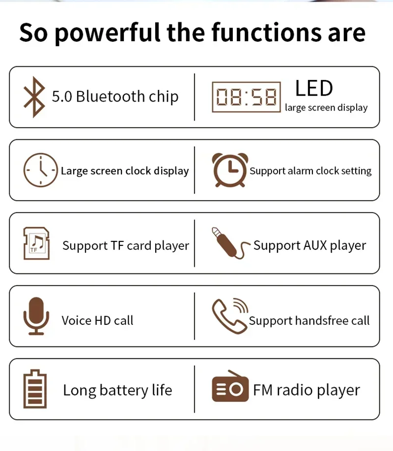 6.Función de radio FM: inserte el cable de audio configurado en el orificio de audio como antena y luego cambie a la función FM para que el efecto de radio sea mejor.
