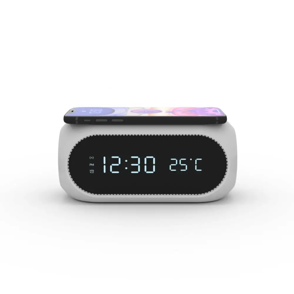 Comprar Reloj despertador multifuncional creativo compatible con bluetooth, luz nocturna, teléfono móvil, cargador inalámbrico, 15W, Cha rápida, nuevo