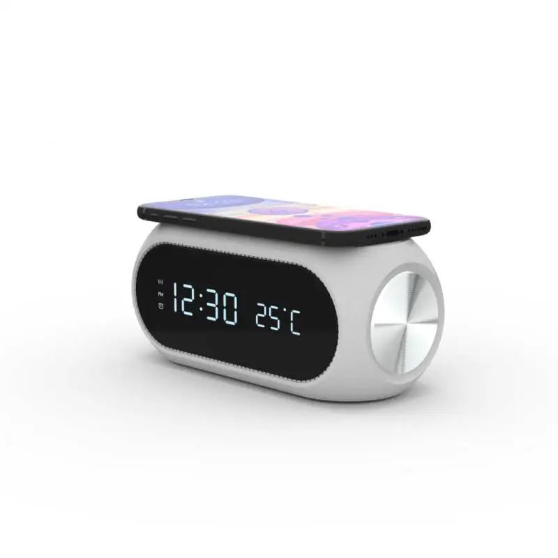Nuevo reloj de Audio multifuncional creativo compatible con Bluetooth, reloj despertador, luz nocturna, cargador inalámbrico para teléfono móvil, 15W, Cha rápido