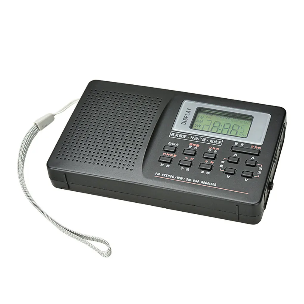 Radio FM AM SW LW: disfrute de una amplia gama de canales con esta radio portátil que admite múltiples canales de recepción. Manténgase conectado a sus estaciones favoritas donde quiera que vaya.Sensibilidad súper alta y respuesta rápida: Experimente un sonido cristalino y un cambio rápido de canal con la alta sensibilidad y respuesta rápida de esta radio digital.Frecuencia de pantalla digital de alta selectividad y reloj digital: sintonice fácilmente la frecuencia deseada y manténgase al día con la función de reloj digital. La alta selectividad garantiza una recepción de señal precisa y fuerte.Excelente circuito integrado para un buen efecto de recepción: de un excelente circuito integrado que proporciona un excelente efecto de recepción. Disfrute de un sonido claro e ininterrumpido.Y un interruptor electrónico táctil para un control oportuno: controla cómodamente la radio con el interruptor electrónico táctil, lo que garantiza un funcionamiento sencillo. Mantenga el control de su experiencia auditiva en todo momento.