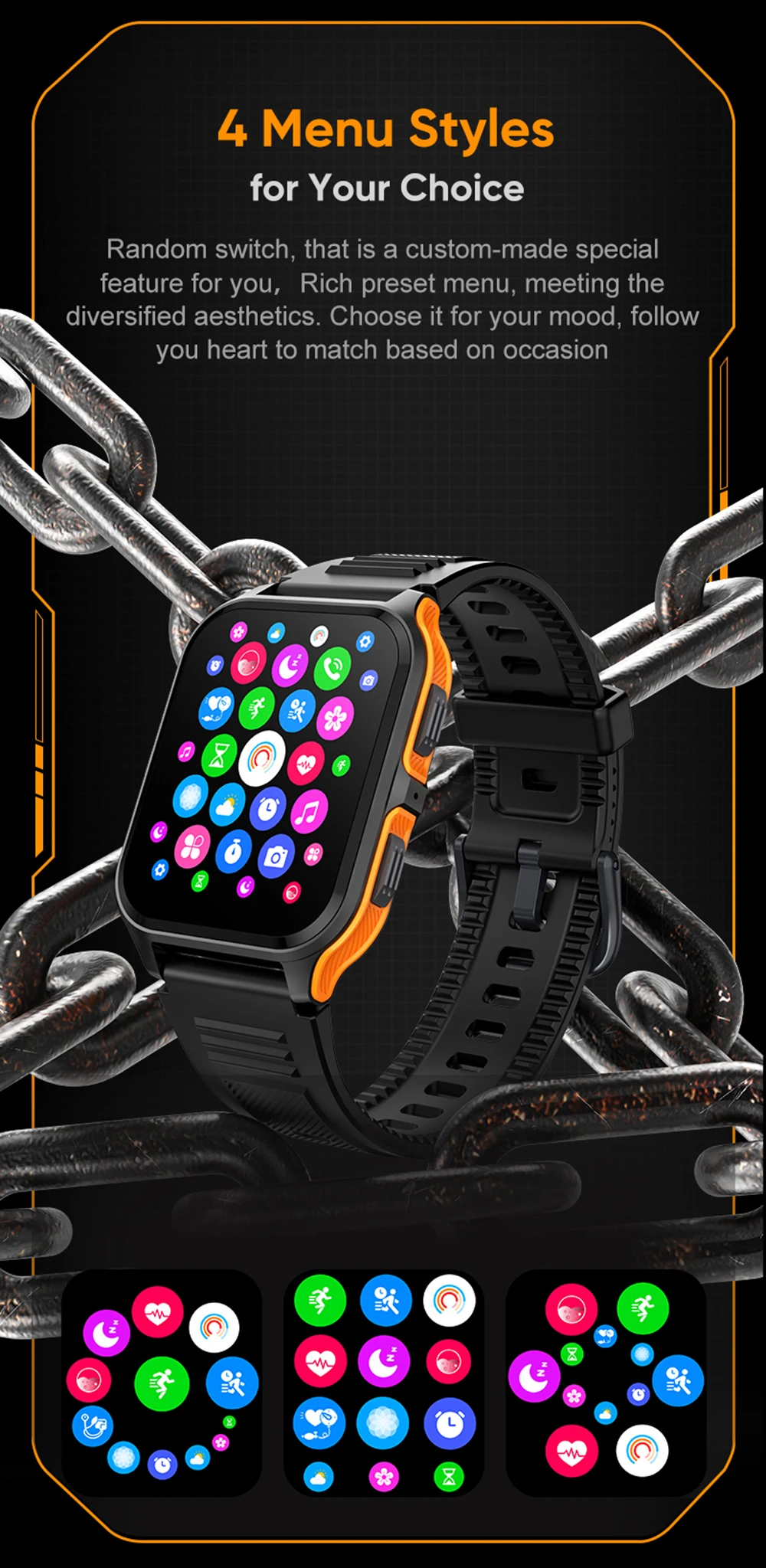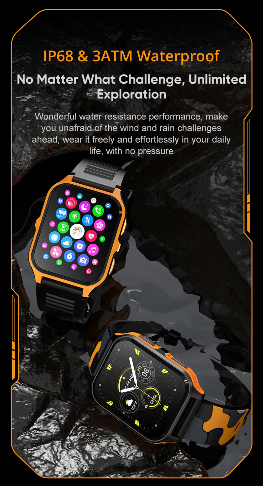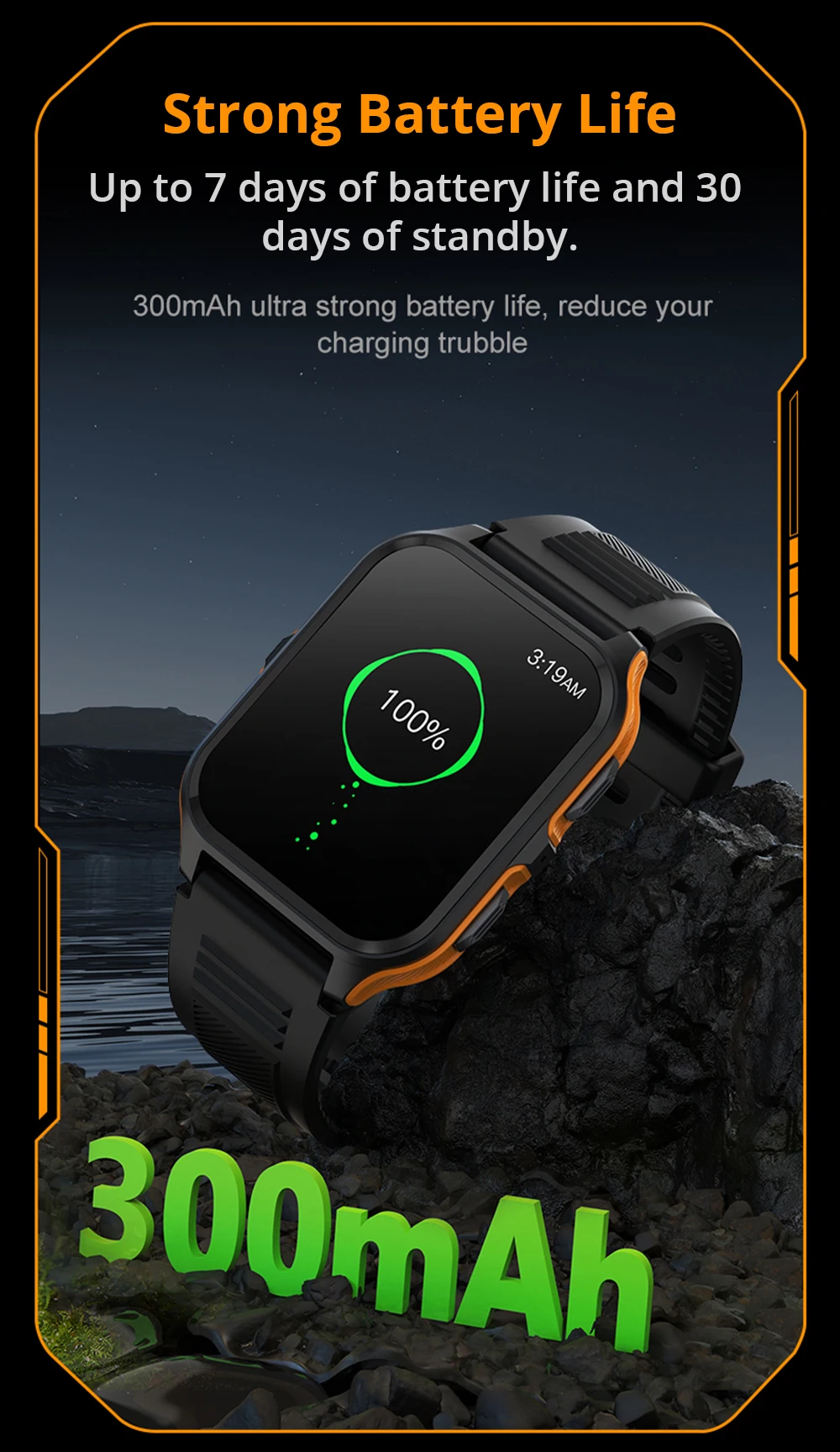 • Impermeable profesional :Este smartwatch está diseñado para soportar duras condiciones al aire libre con su grado impermeable profesional.