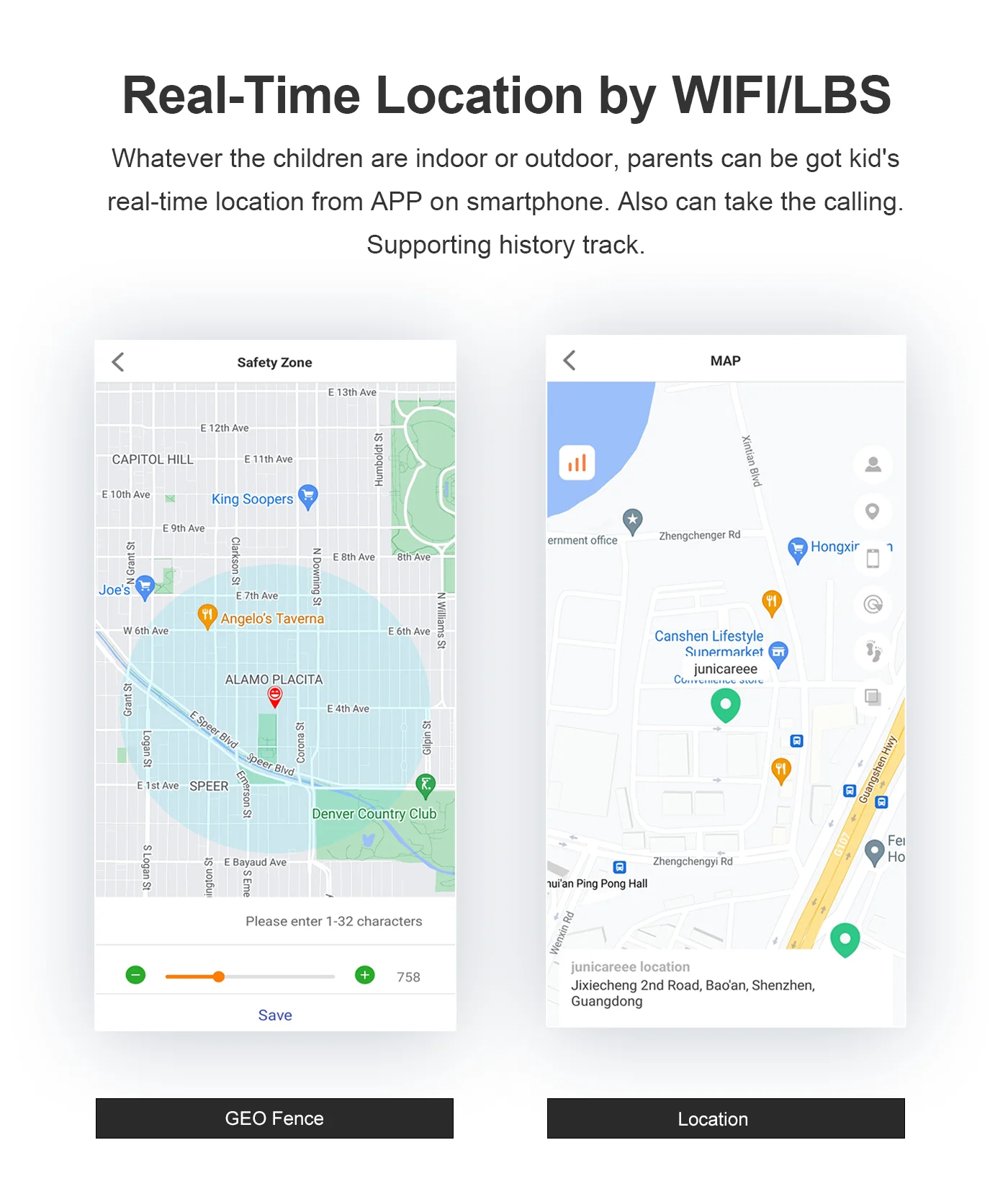 15, otras funciones: valla electrónica (GEO), seguimiento de la historia, despertador, buscar reloj, directorio telefónico, modo de trabajo, reloj de apagado remoto, aplicación compatible para teléfonos inteligentes Android e IOS.