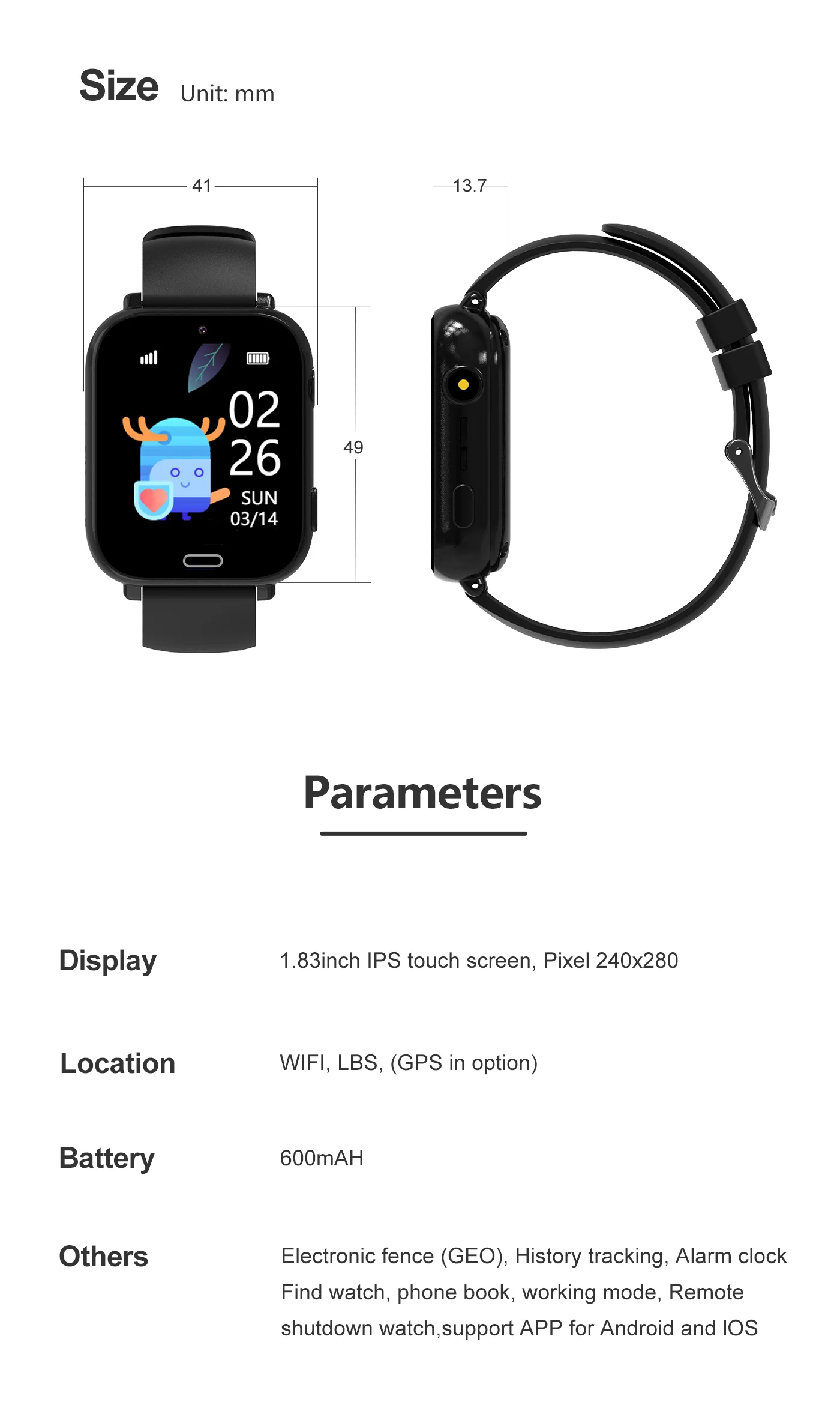 Comprar Reloj inteligente 4G para niños, pantalla HD de 1,83 pulgadas, WIFI, ubicación LBS, resistente al agua, 7 juegos, cámara, videollamada, despertador, regalos para niños