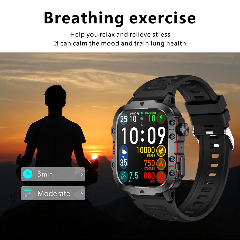 【Certificación de grado militar y marco totalmente metálico】 Los relojes inteligentes militares se someten a 15 de las pruebas de durabilidad más rigurosas para simular condiciones duras como desiertos, bosques de lluvia y clima ártico.Esto demuestra que sólo un reloj diseñado para adaptarse a cualquier entorno puede ser lo suficientemente inteligente como para ser fácil de usar.Es resistente al agua IP68 y puede soportar salpicaduras, sudor, etc.como lavarse las manos o lluvia ligera (no apto para nadar o inmersión prolongada).