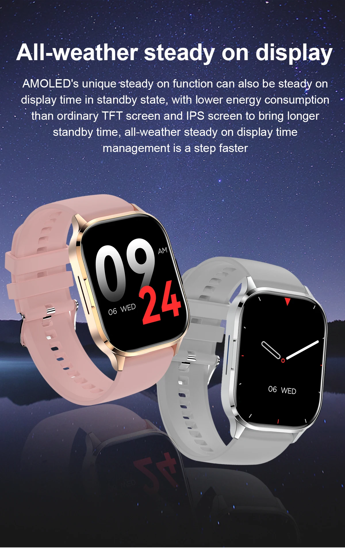 Comprar Reloj inteligente AMOLED con Bluetooth, dispositivo con llamadas, NFC, control del ritmo cardíaco y de la presión arterial, resistente al agua, IP67, completamente táctil, nuevo