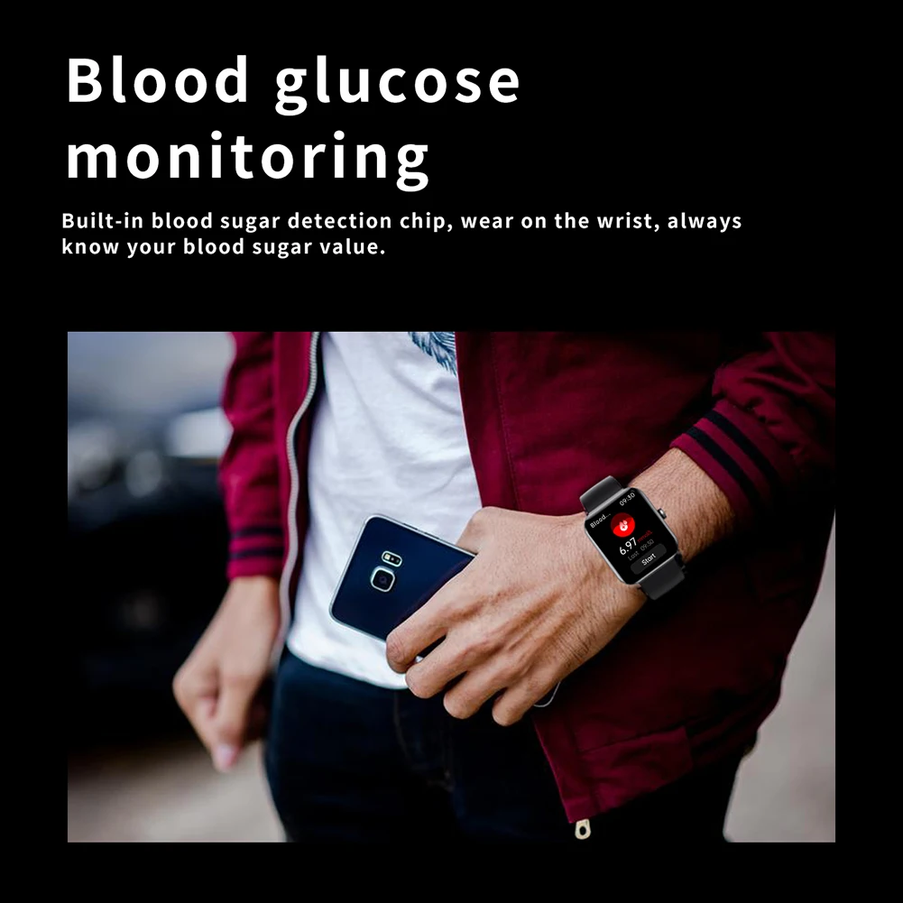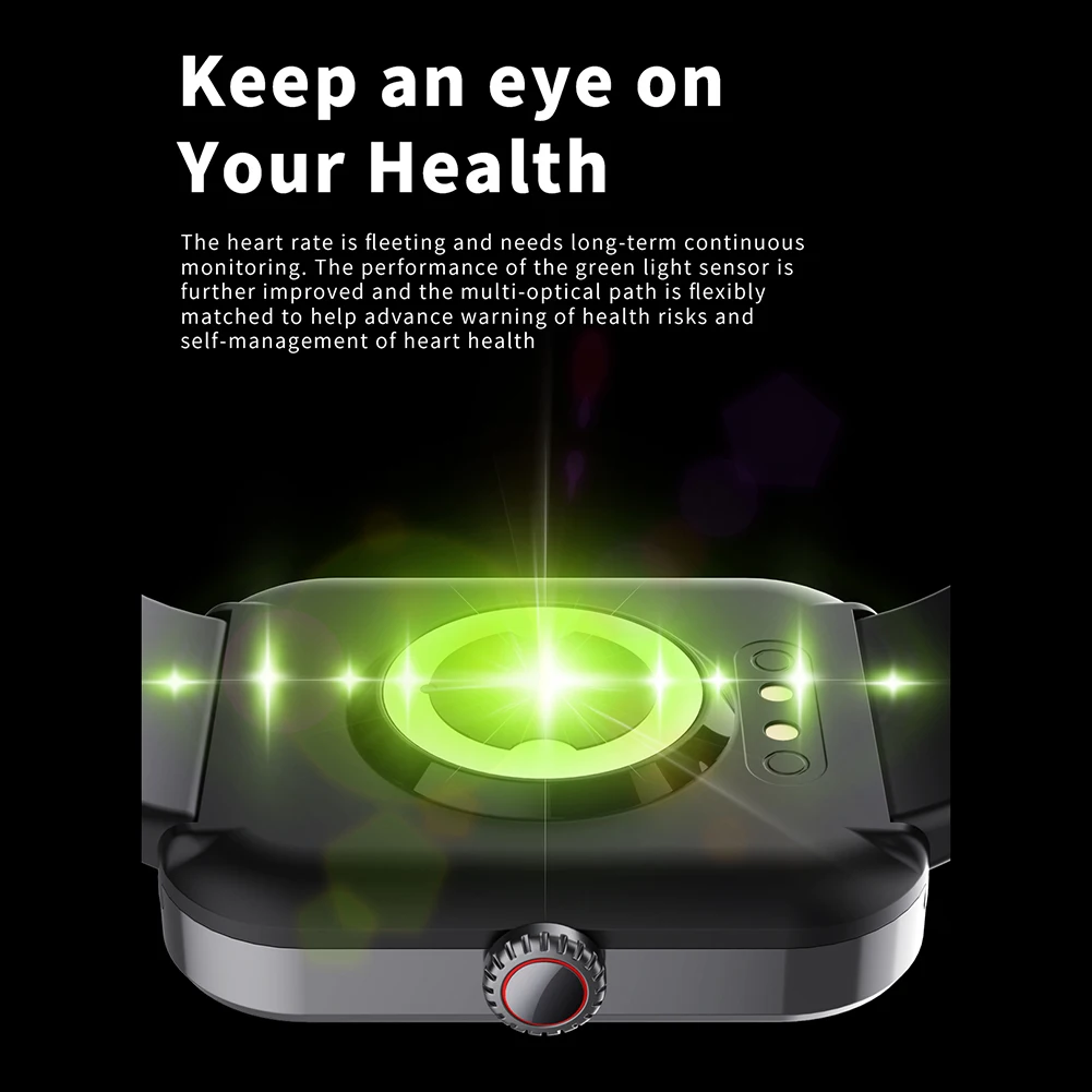 2. Control de azúcar en sangre:Con un sensor óptico de frecuencia cardíaca y una luz LED en la parte posterior del reloj, este reloj inteligente puede controlar los niveles de azúcar en sangre de forma continua, proporcionando lecturas de alta precisión en todo momento. También tiene un sensor óptico de seguimiento biológico PPG avanzado que le permite medir y ajustar su estado de salud fácilmente después del trabajo o el ejercicio.