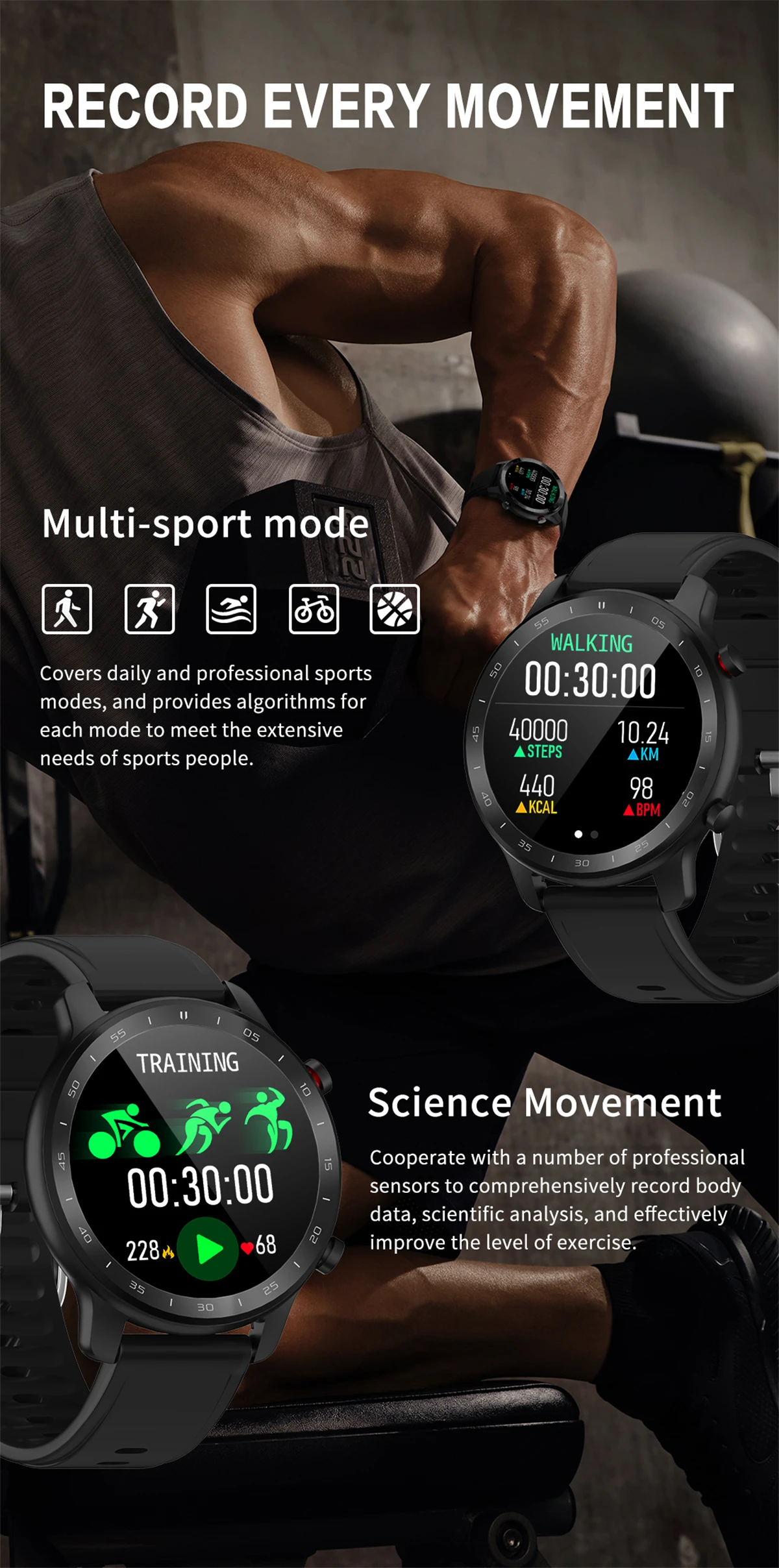 Coopere con una serie de sensores profesionales para registrar de manera integral los datos del cuerpo, el análisis científico y mejorar efectivamente el nivel de ejercicio.