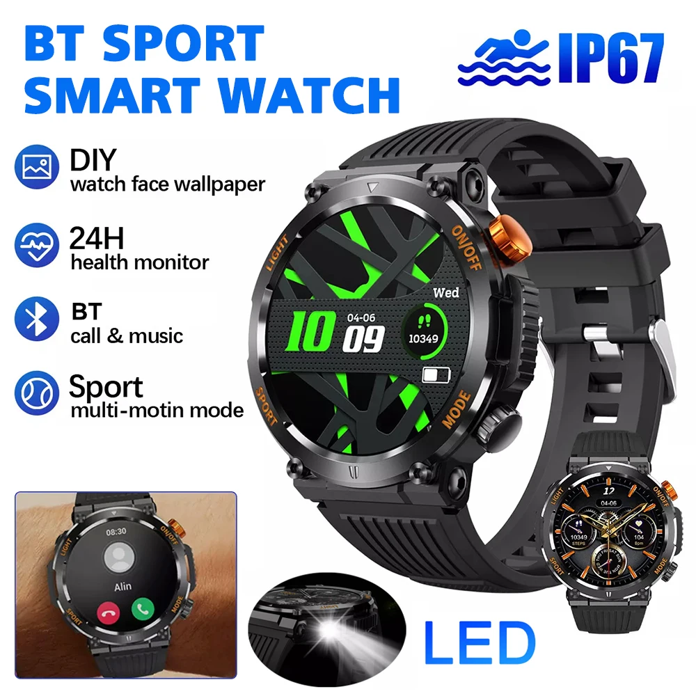 Comprar Reloj inteligente deportivo para hombre, pulsera resistente al agua IP67 con llamadas, Bluetooth, Monitor de ritmo cardíaco y salud, para Android e iOS, 2024