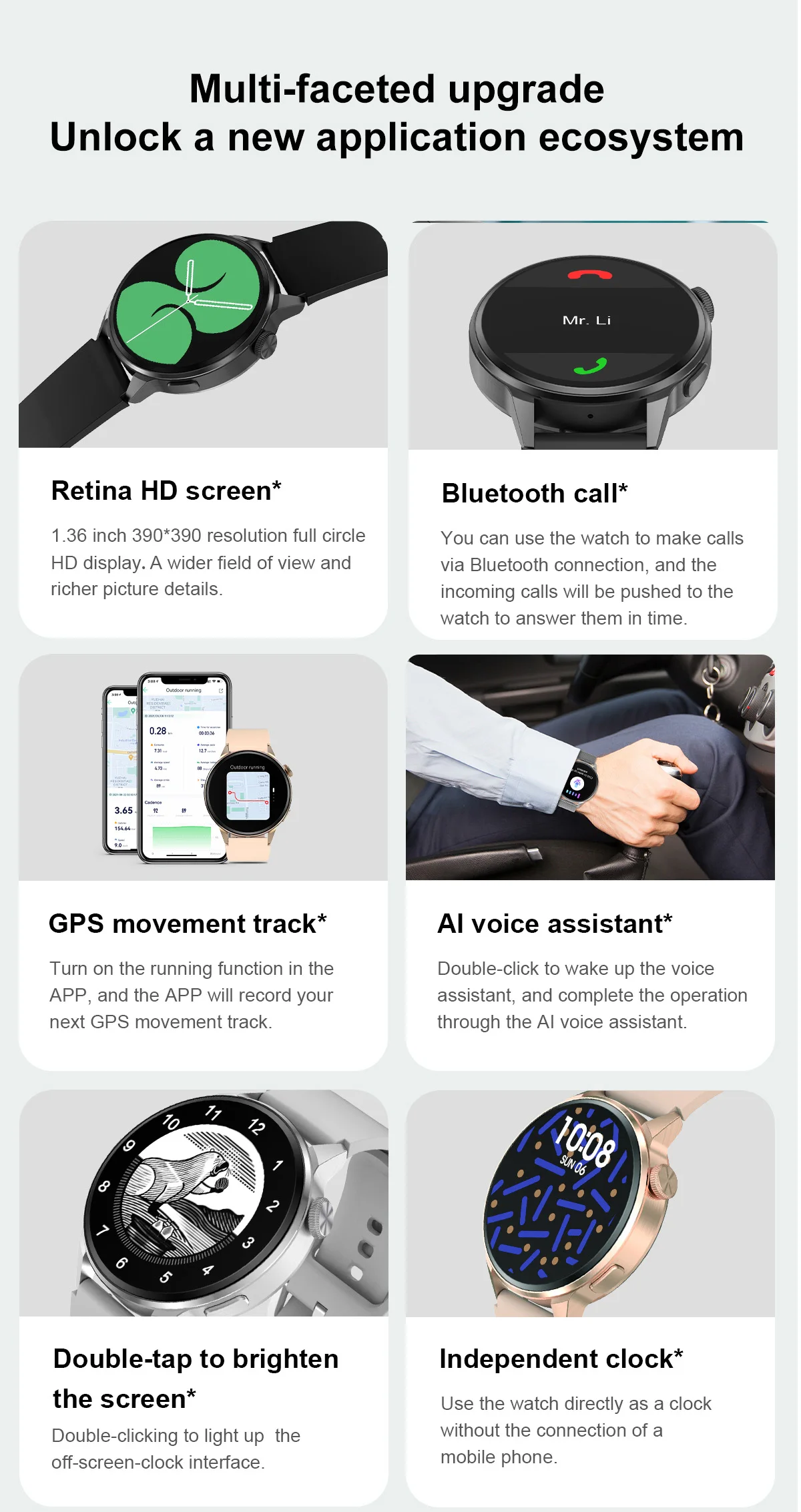 Comprar Reloj inteligente DT4 + para hombre y mujer, accesorio de pulsera con rastreador GPS, Bluetooth, llamadas, NFC, asistente de voz, contraseña, carga inalámbrica, 390X390