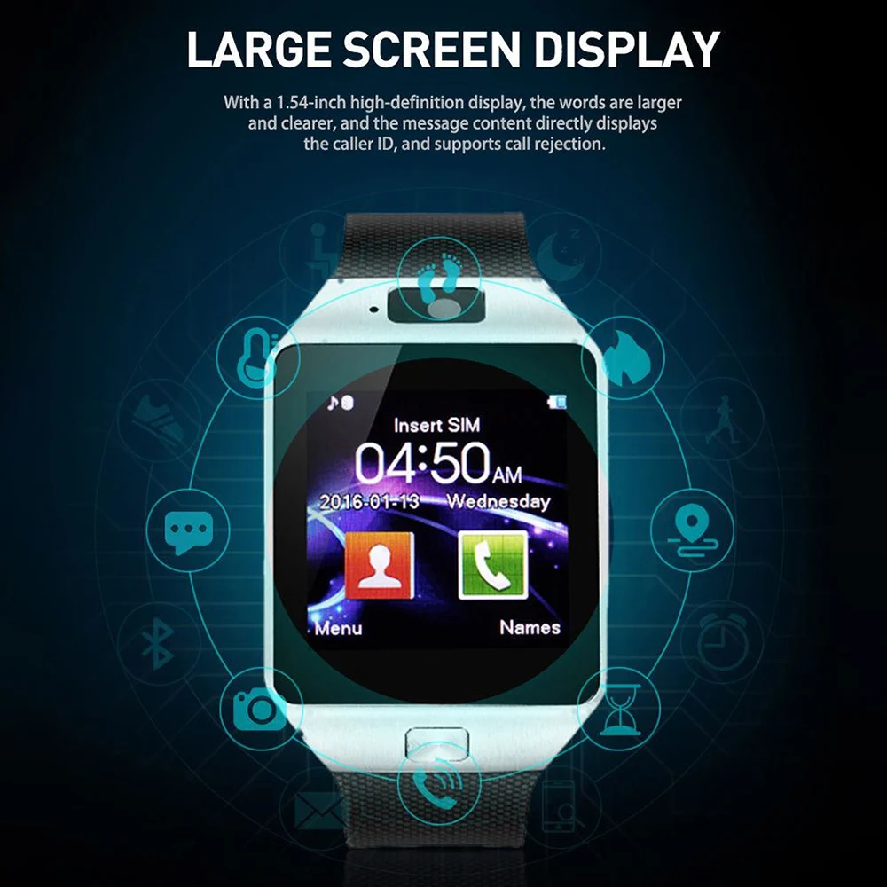 Comprar Reloj inteligente DZ09 con pantalla táctil, Bluetooth, recordatorio de llamadas deportivas, teléfono, reloj, cámara, compatible con tarjeta SIM 2G, pulsera inteligente de Fitness