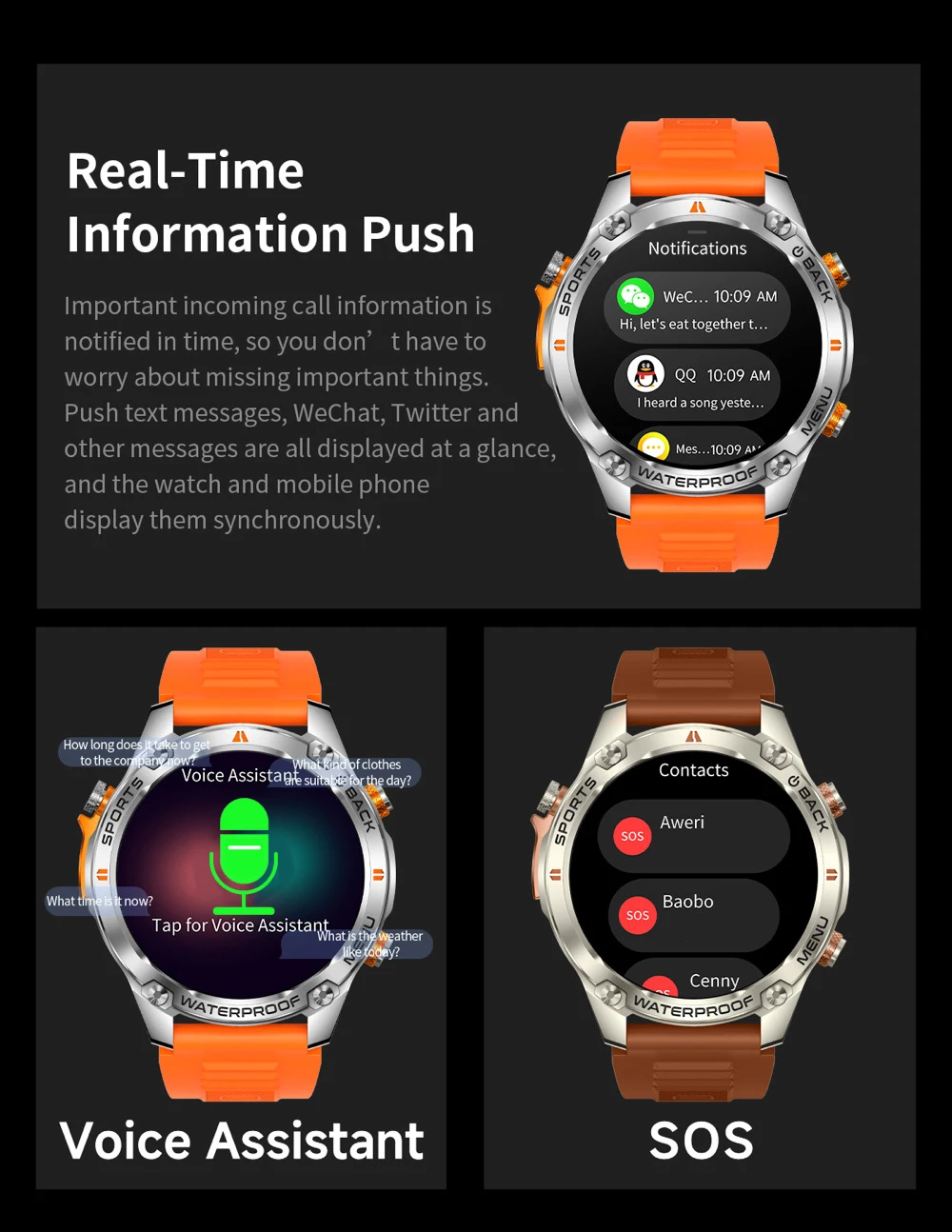 9. Multiple health monitoring (heart rate,, physiological cycle management, sleep, etc.) 10. Voice assistant.