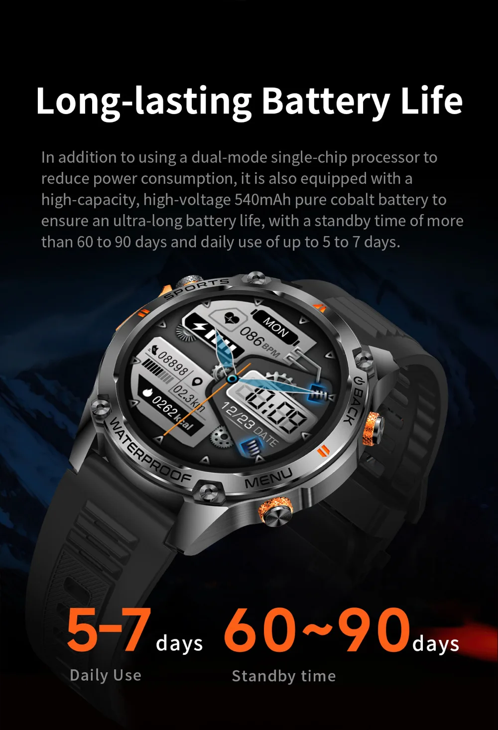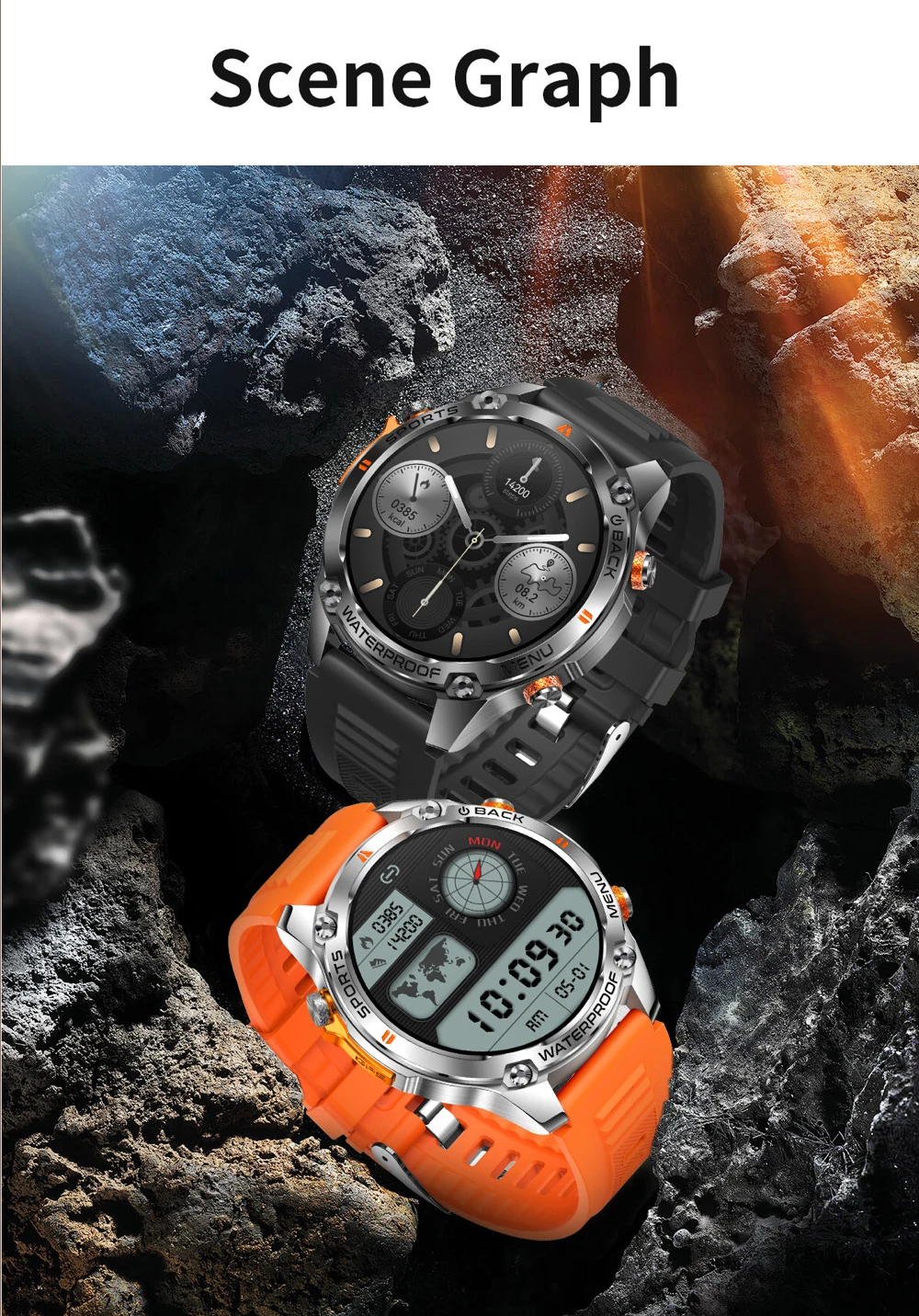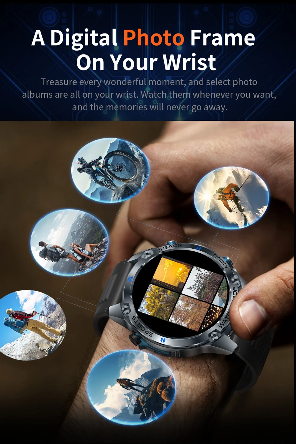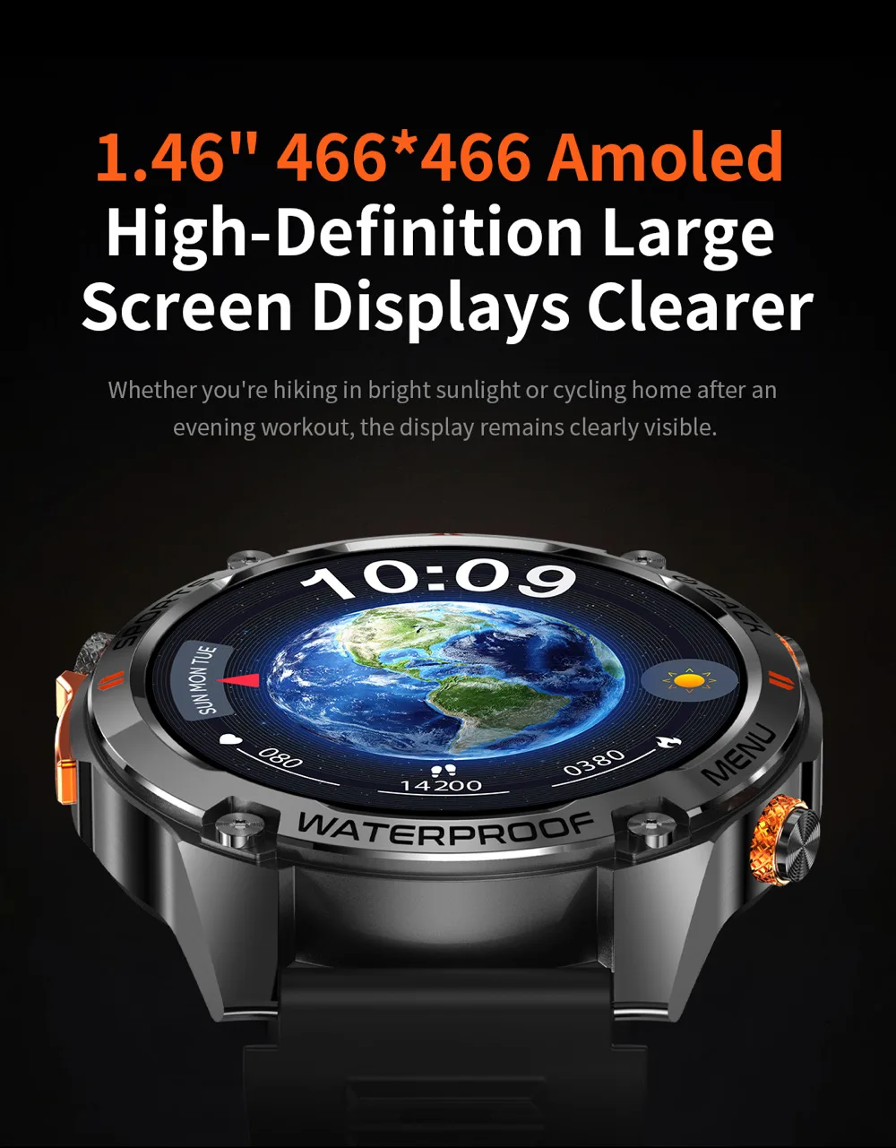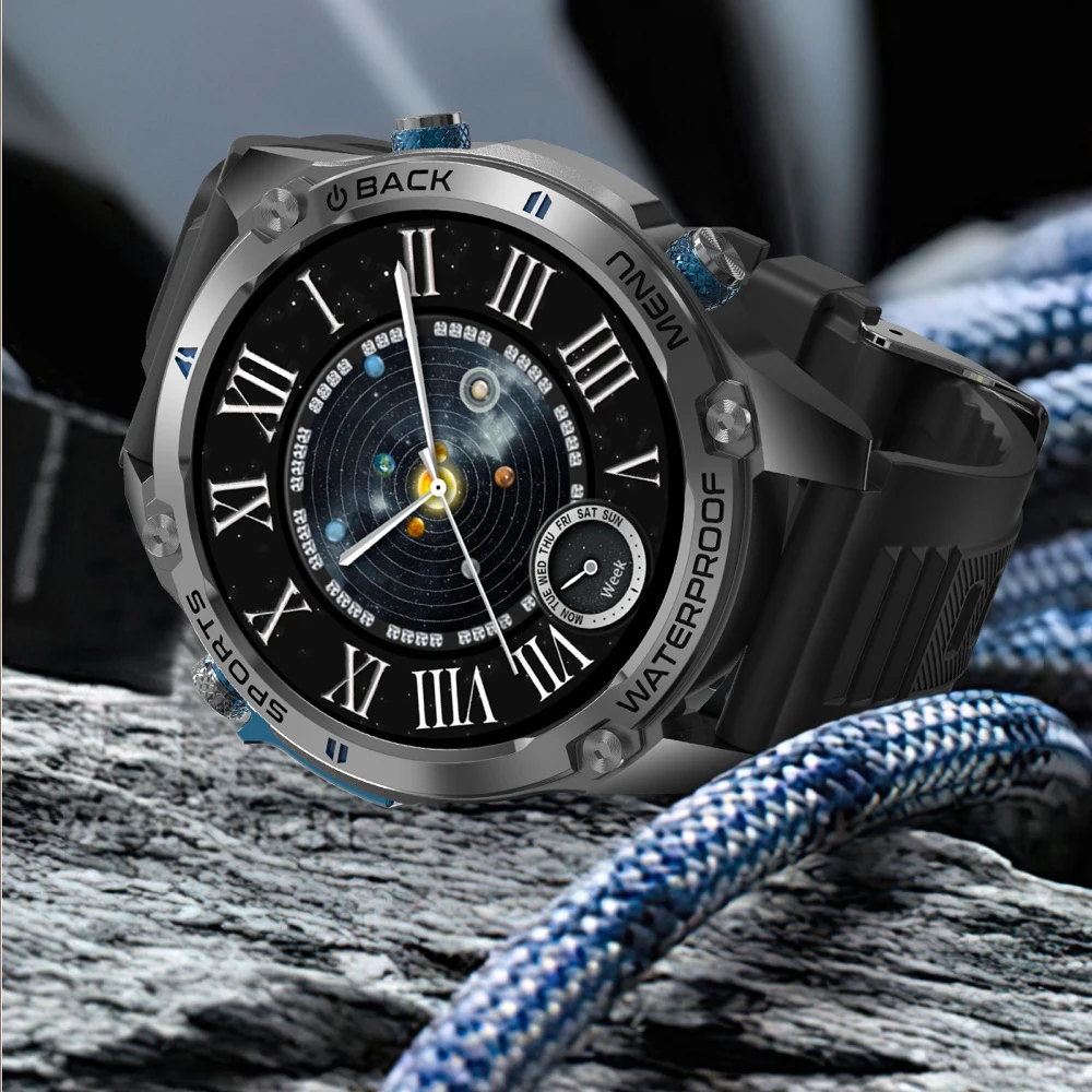Dual-band L1+L5 and 6 Satellite Positioning systems with built-in GPS, cold Start time within 35 seconds/1.43 466*466 amoled display/DIY video dials+ Cloud video dials Increase the emotional value of customer and enhance the product experience/Built-in 128MB+128MB large memory, carefully selected albums on the wrist, you can watch it whenever you want/5ATM waterproof in depth/GH3018 Highly Accurate Heart Rate Chip, sporadic naps can be detected easily/Bluetooth can be connected with one touch/ BT calling/100+sports modes /IP69K waterproof