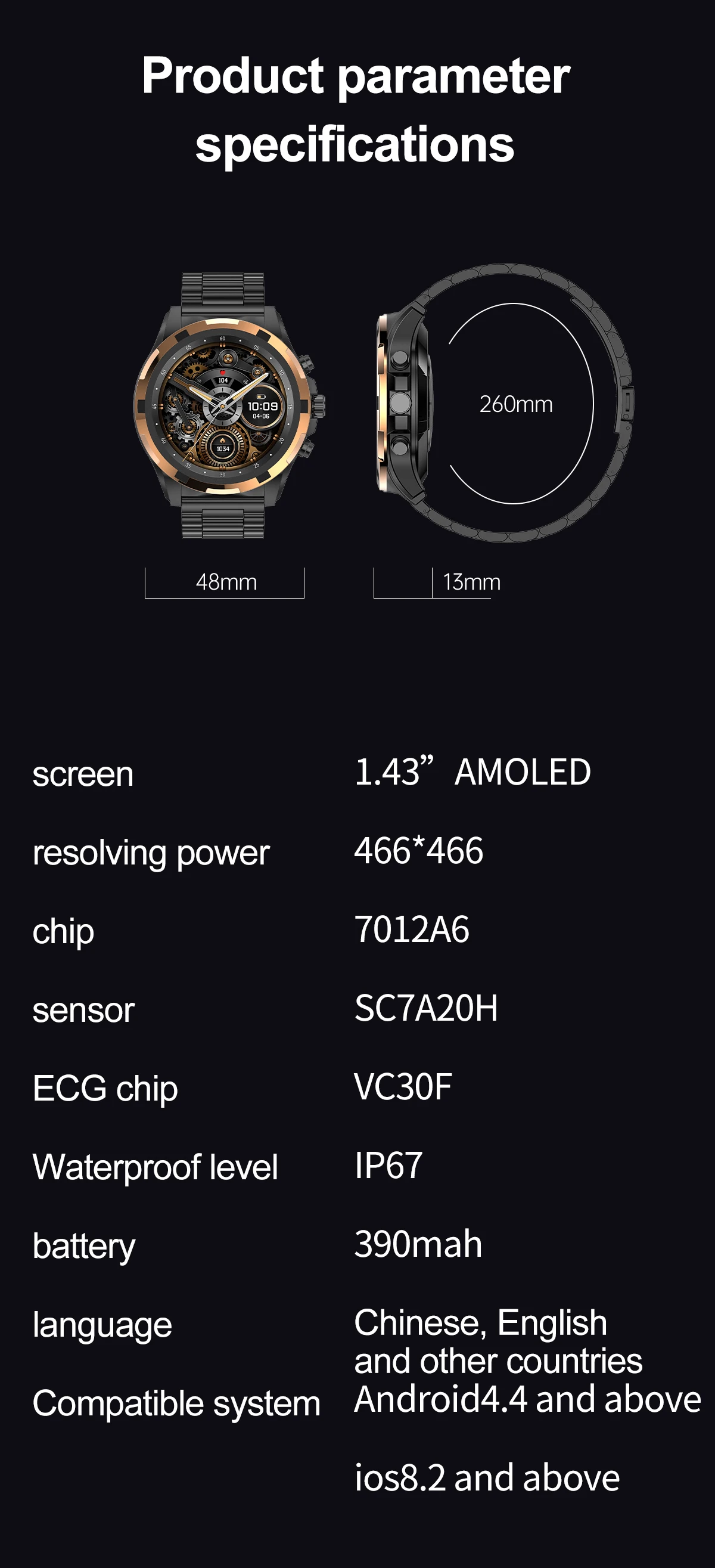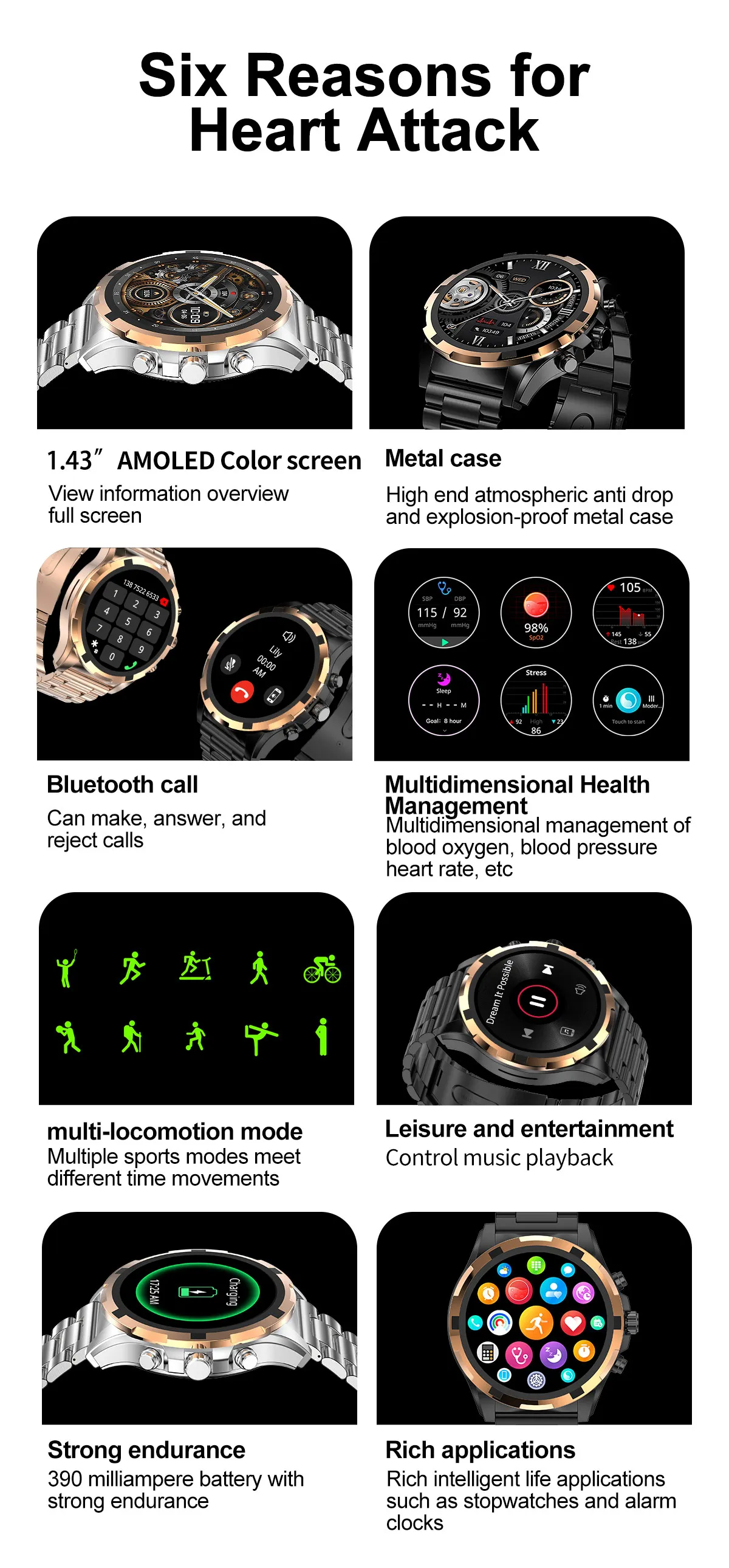 Comprar Reloj inteligente HK98 para hombre, accesorio de pulsera resistente al agua IP67 con pantalla táctil Amoled, control del ritmo cardíaco, compatible con Android e IOS