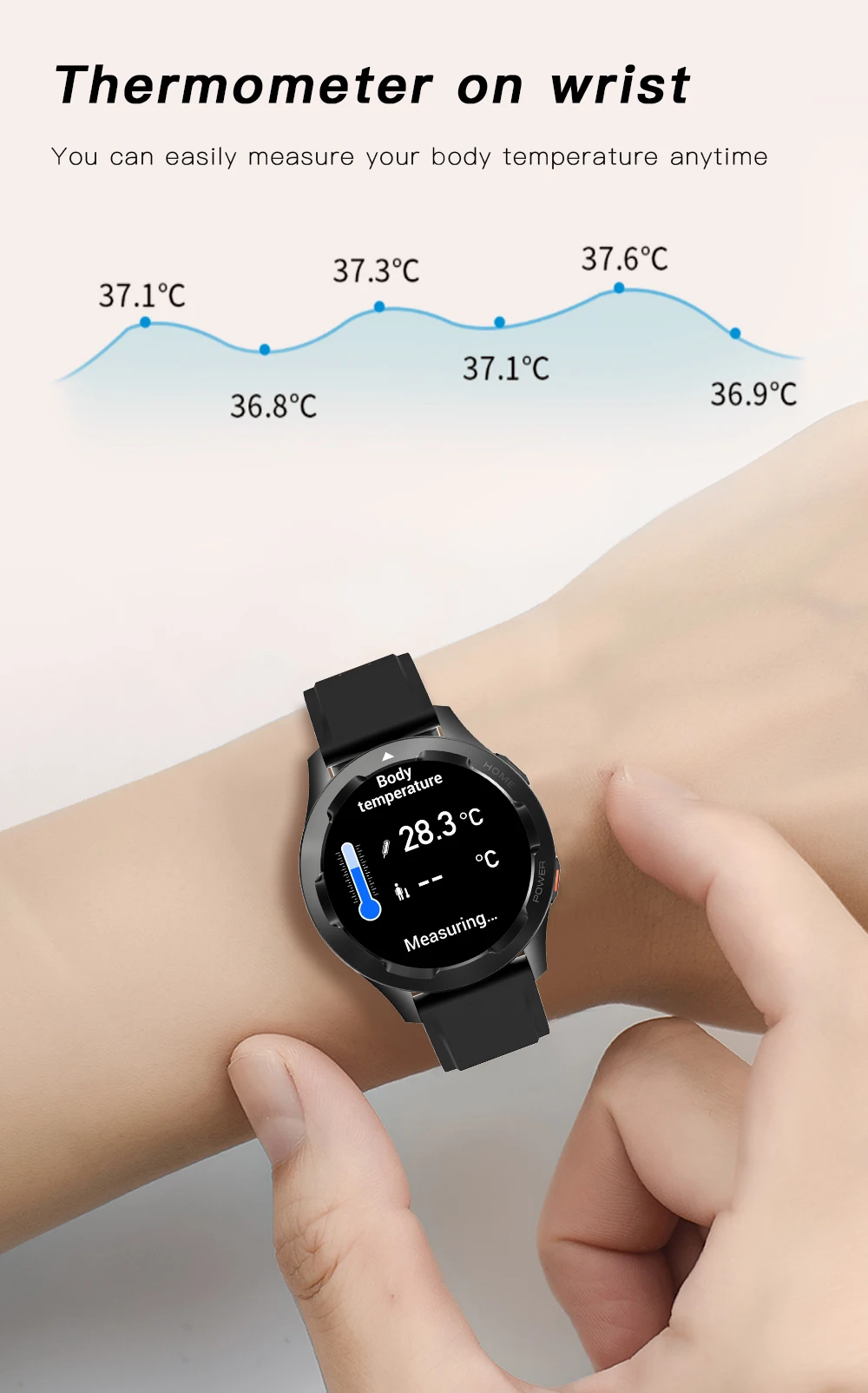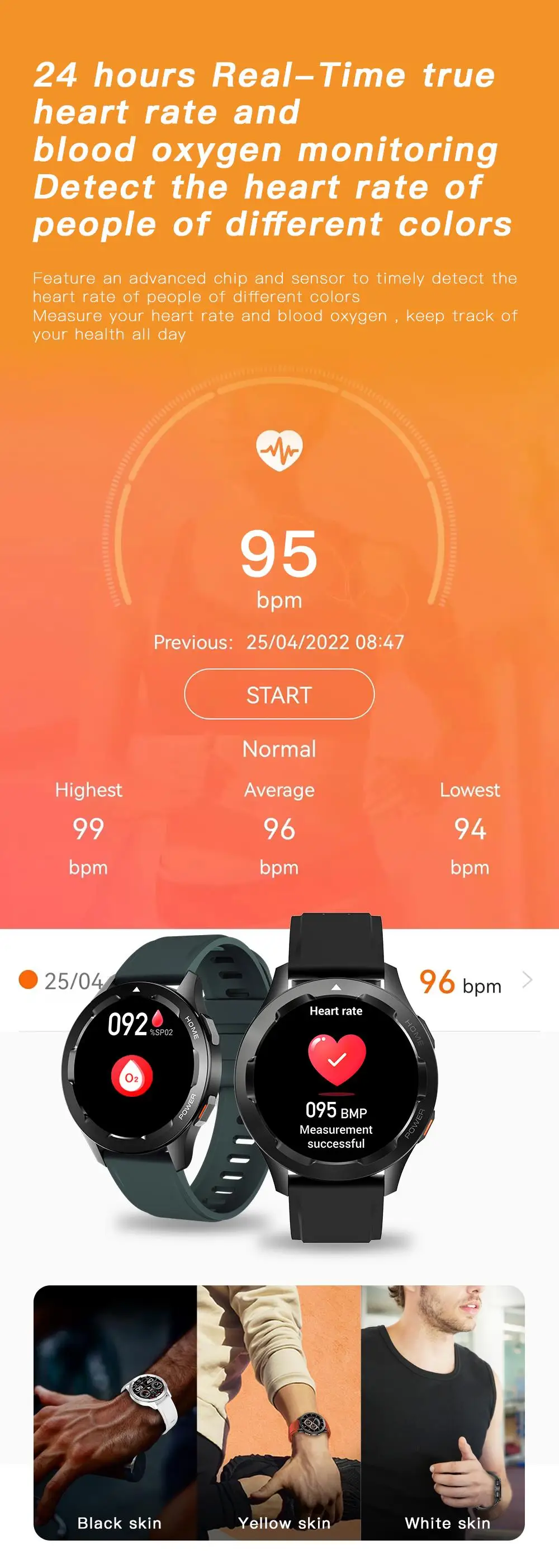 1.detección de temperatura/llamada Bluetooth/desbloqueo de control de acceso NFC/medición de frecuencia cardíaca y oxígeno en sangre de múltiples colores de piel/asistente de voz/esfera definida por el usuario.