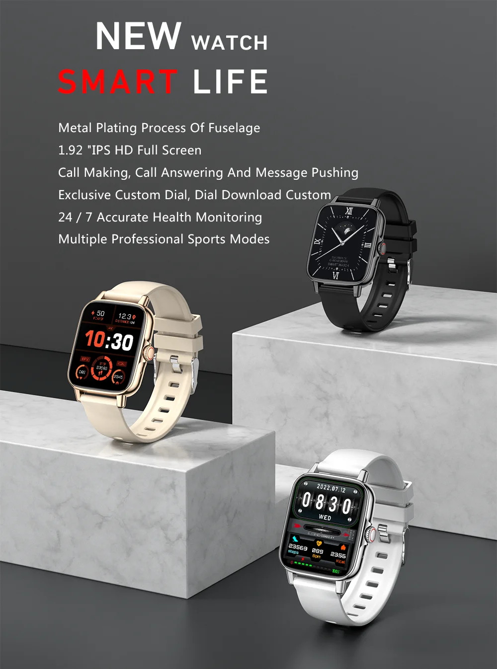 1. Los dispositivos portátiles monitorean las actividades humanas a través de sensores electrónicos.Están al nivel de la electrónica de consumo.Es normal que haya cierta desviación.Los resultados de las pruebas sanitarias del reloj son solo de referencia y no se pueden comparar con equipos médicos.Cuando el reloj se coloca en la superficie del objeto, habrá frecuencia cardíaca/presión arterial y otros resultados de pruebas.Es normal y no es un defecto del producto.