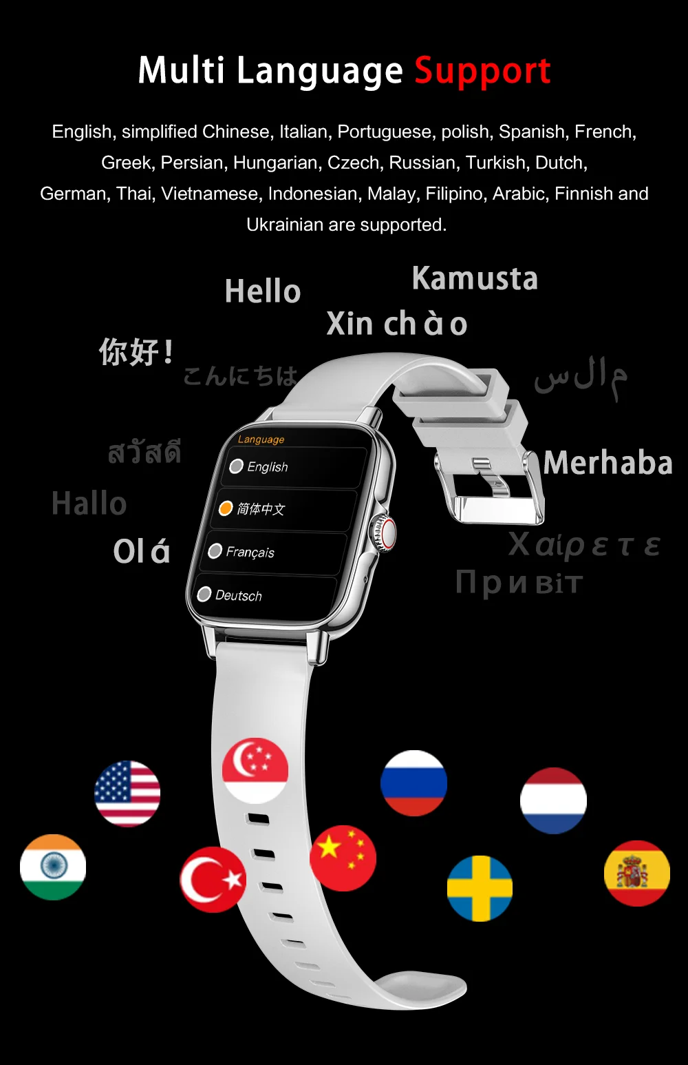 3.Idioma de soporte de la aplicación: inglés, chino simplificado, italiano, portugués, polaco, español, francés, griego, persa, húngaro, checo, ruso, turco, holandés, alemán, tailandés, vietnamita, indonesio, malayo, filipino, árabe, Finlandés, ucraniano.