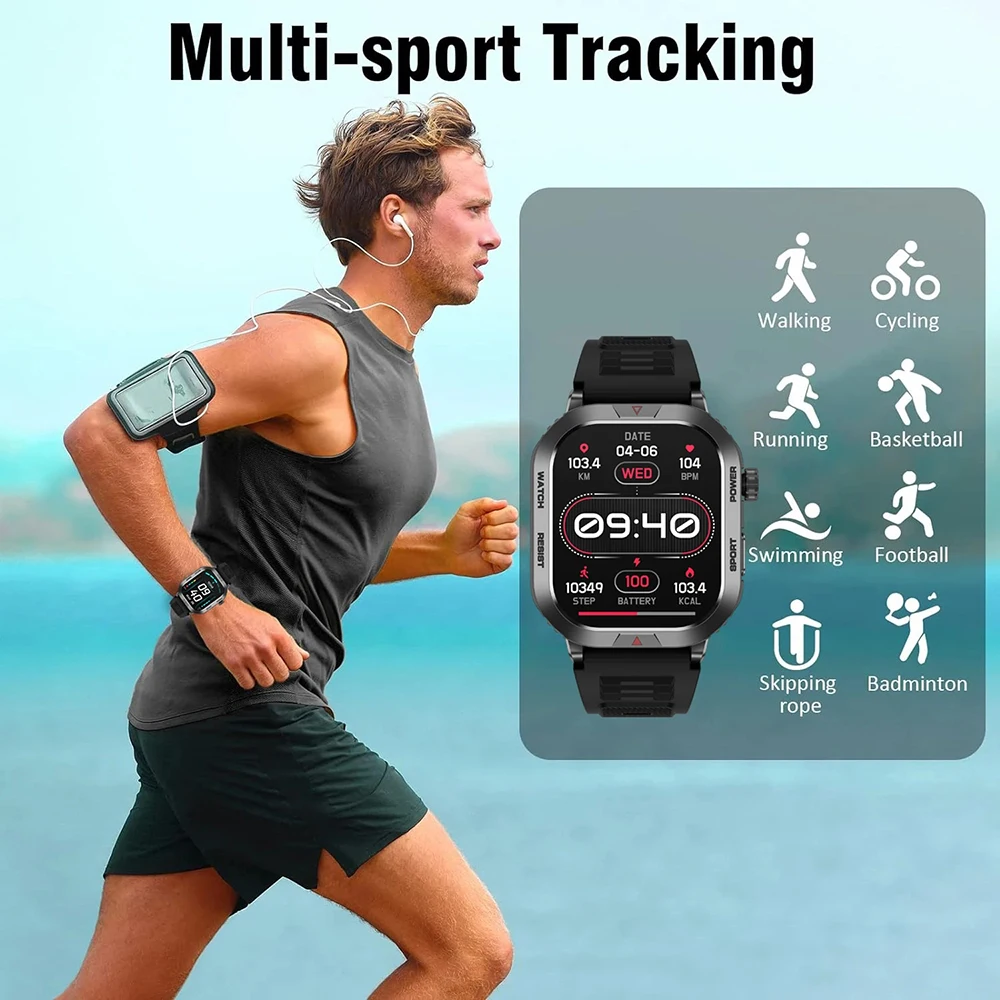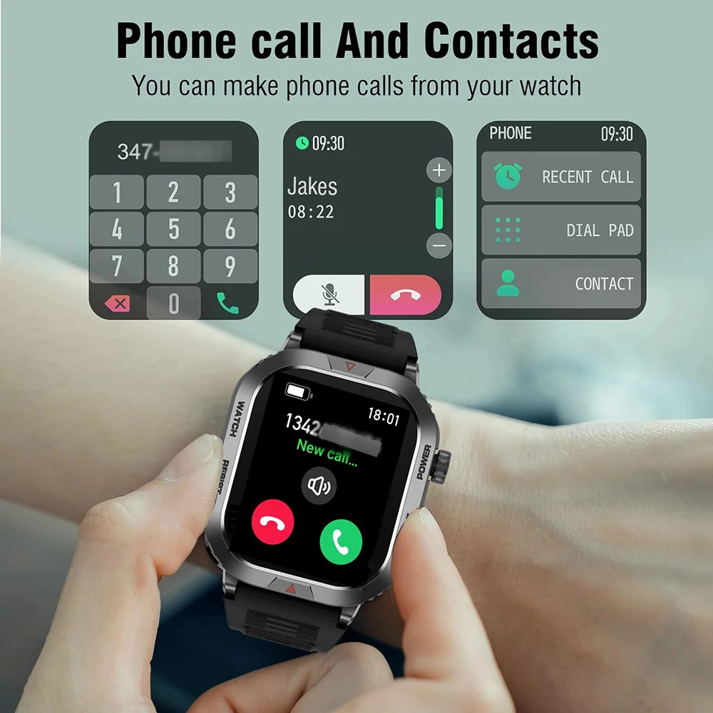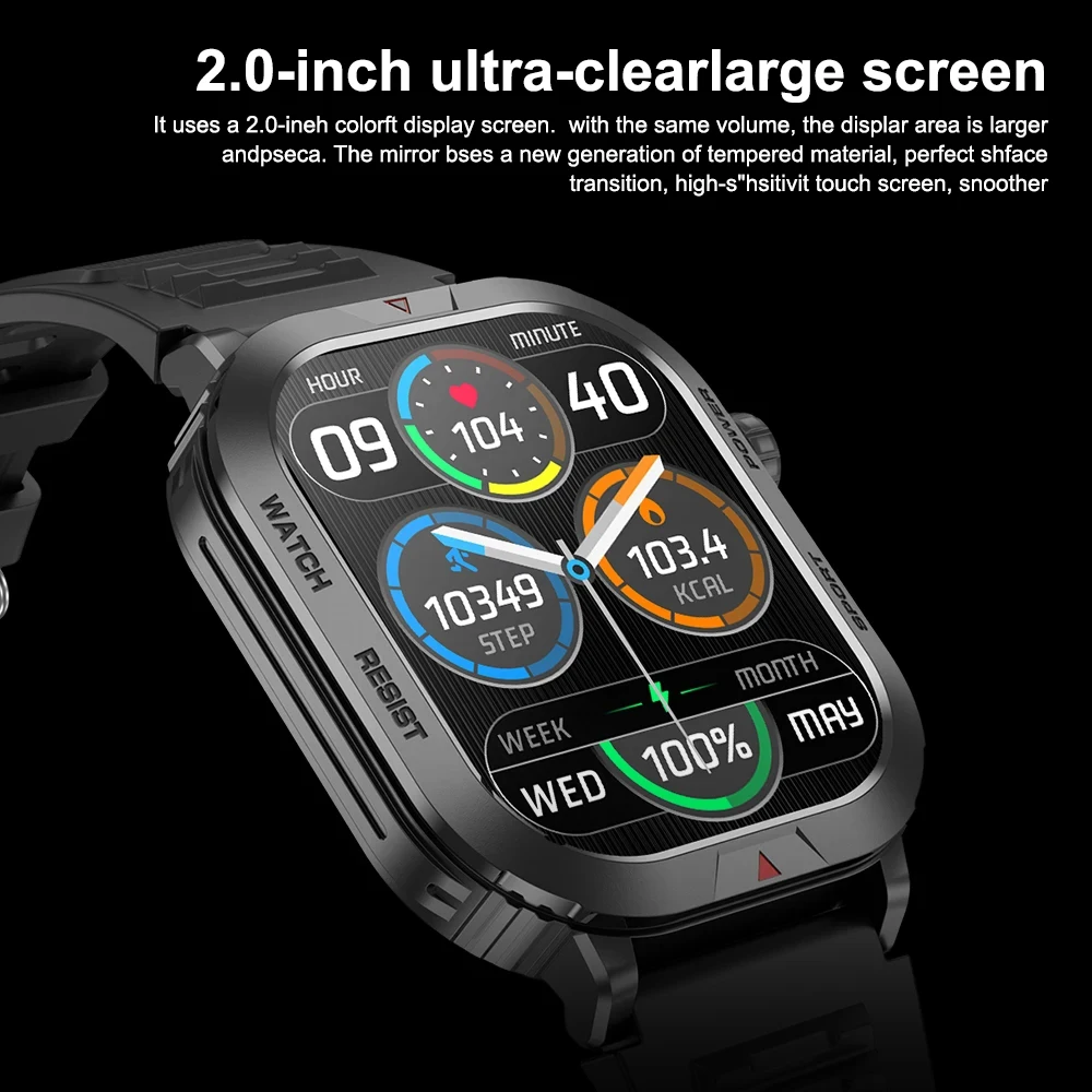 Reloj inteligente deportivo para hombre y mujer, resistente al agua, IP68, 2 pulgadas, Bluetooth, llamada de voz, frecuencia cardíaca, monitoreo del sueño