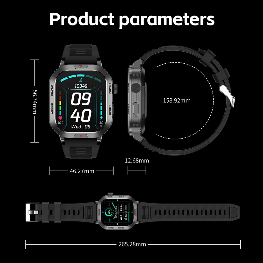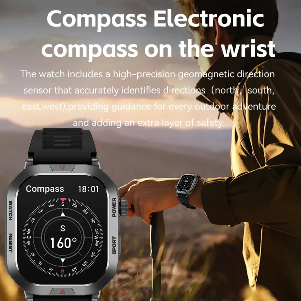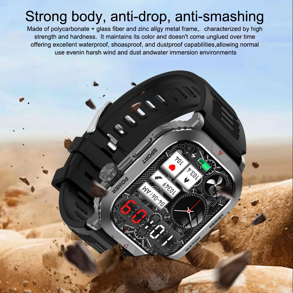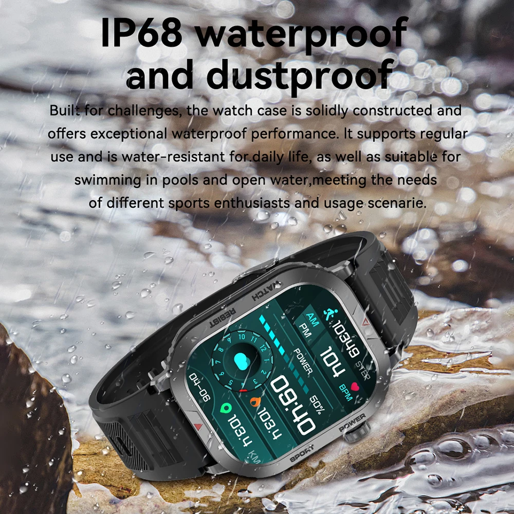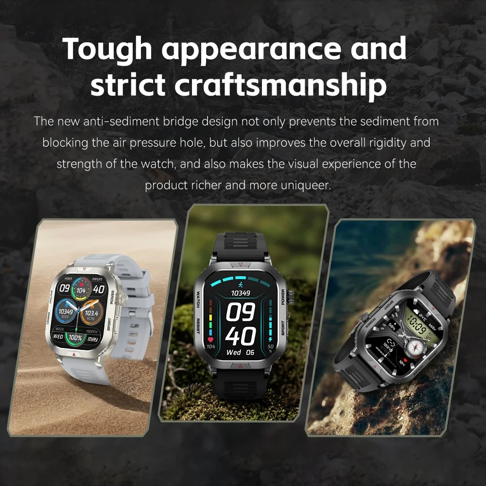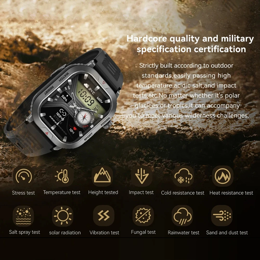 3. Marco de metal: el reloj inteligente se somete a 15 de las pruebas de durabilidad más estrictas para simular condiciones adversas como desiertos, selvas tropicales y clima ártico. Esto demuestra que solo los relojes diseñados para adaptarse a cualquier entorno pueden ser inteligentes y fáciles de usar. Tiene impermeabilidad IP68 y puede soportar salpicaduras, sudor, etc., como lavarse las manos o lluvia ligera (no apto para nadar o remojo a largo plazo).