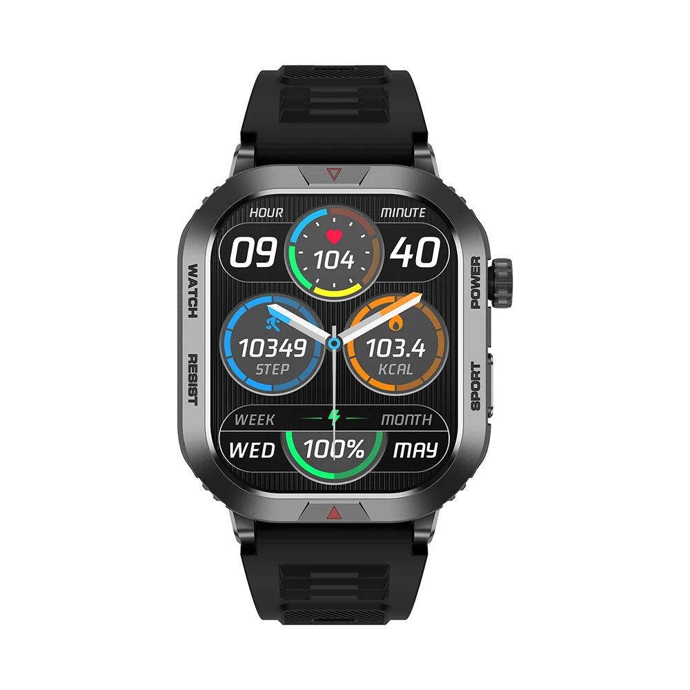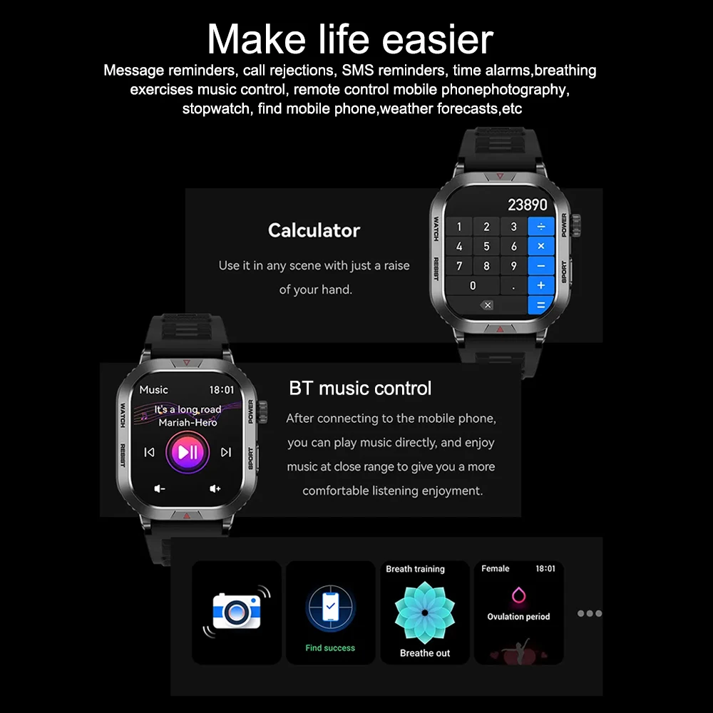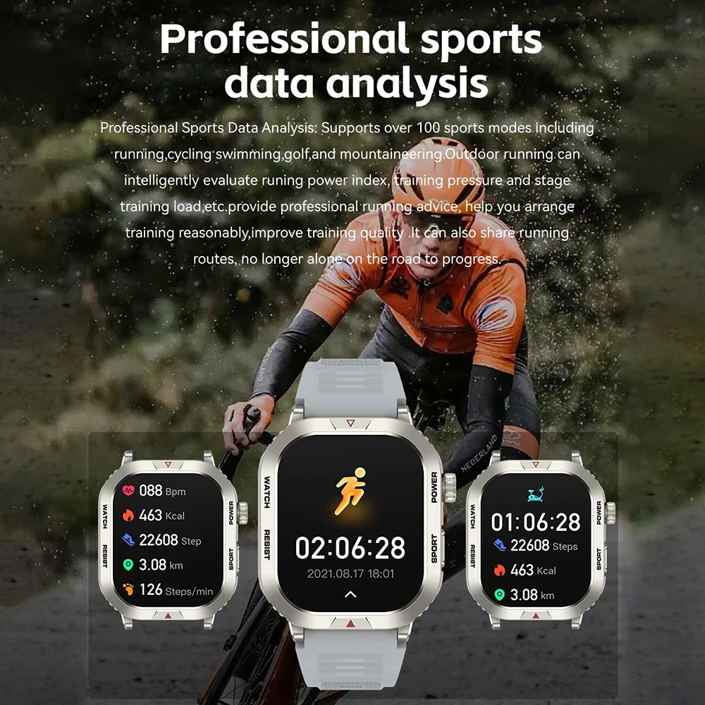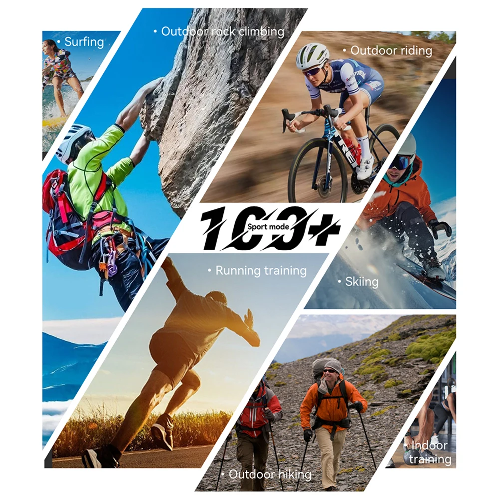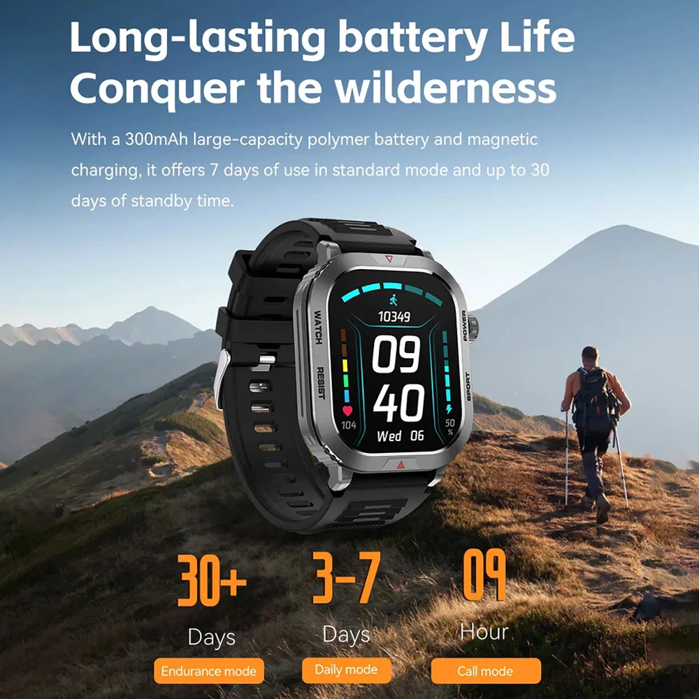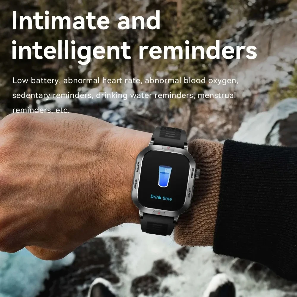 3. Marco de metal: el reloj inteligente se somete a 15 de las pruebas de durabilidad más estrictas para simular condiciones adversas como desiertos, selvas tropicales y clima ártico. Esto demuestra que solo los relojes diseñados para adaptarse a cualquier entorno pueden ser inteligentes y fáciles de usar. Tiene impermeabilidad IP68 y puede soportar salpicaduras, sudor, etc., como lavarse las manos o lluvia ligera (no apto para nadar o remojo a largo plazo).