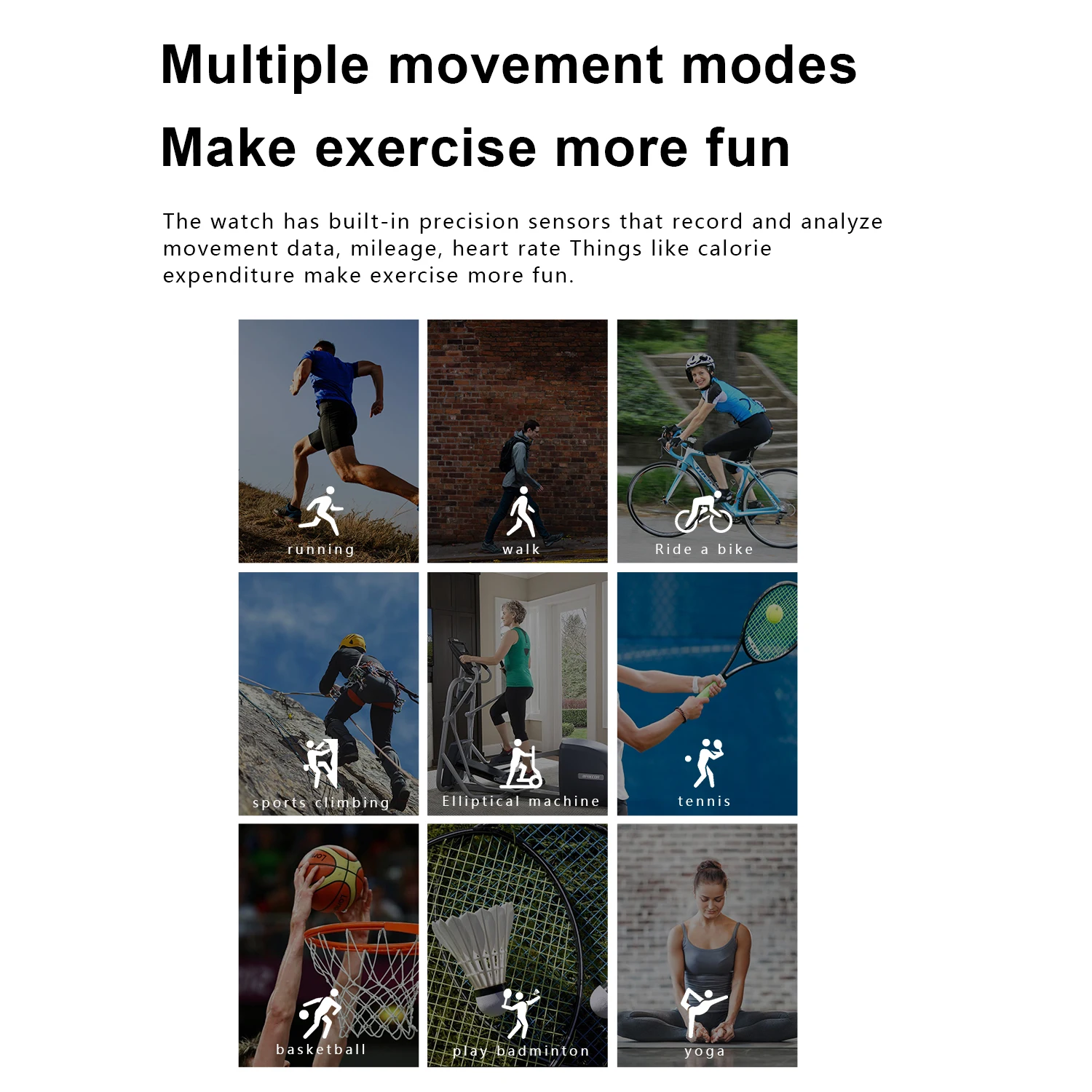 Con 104 modos de ejercicio completos para cualquier actividad, desde caminar hasta correr, ciclismo, escalada en roca, yoga y más, este reloj rastreador de ejercicios rastrea con precisión y facilidad los datos diarios para cualquier propósito, como actividad, distancia y calorías. La batería de gran capacidad de 400mAh se carga completamente en 2 horas, dura 10 días por carga y se puede extender a 30 días en modo de espera.