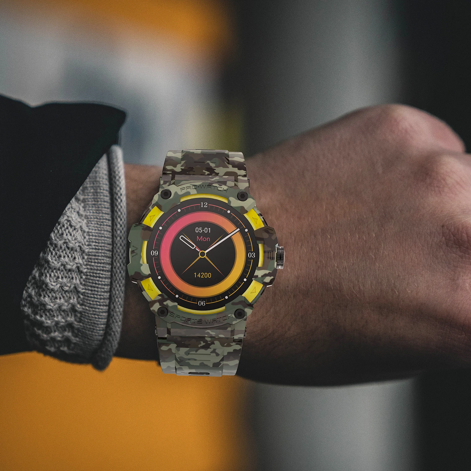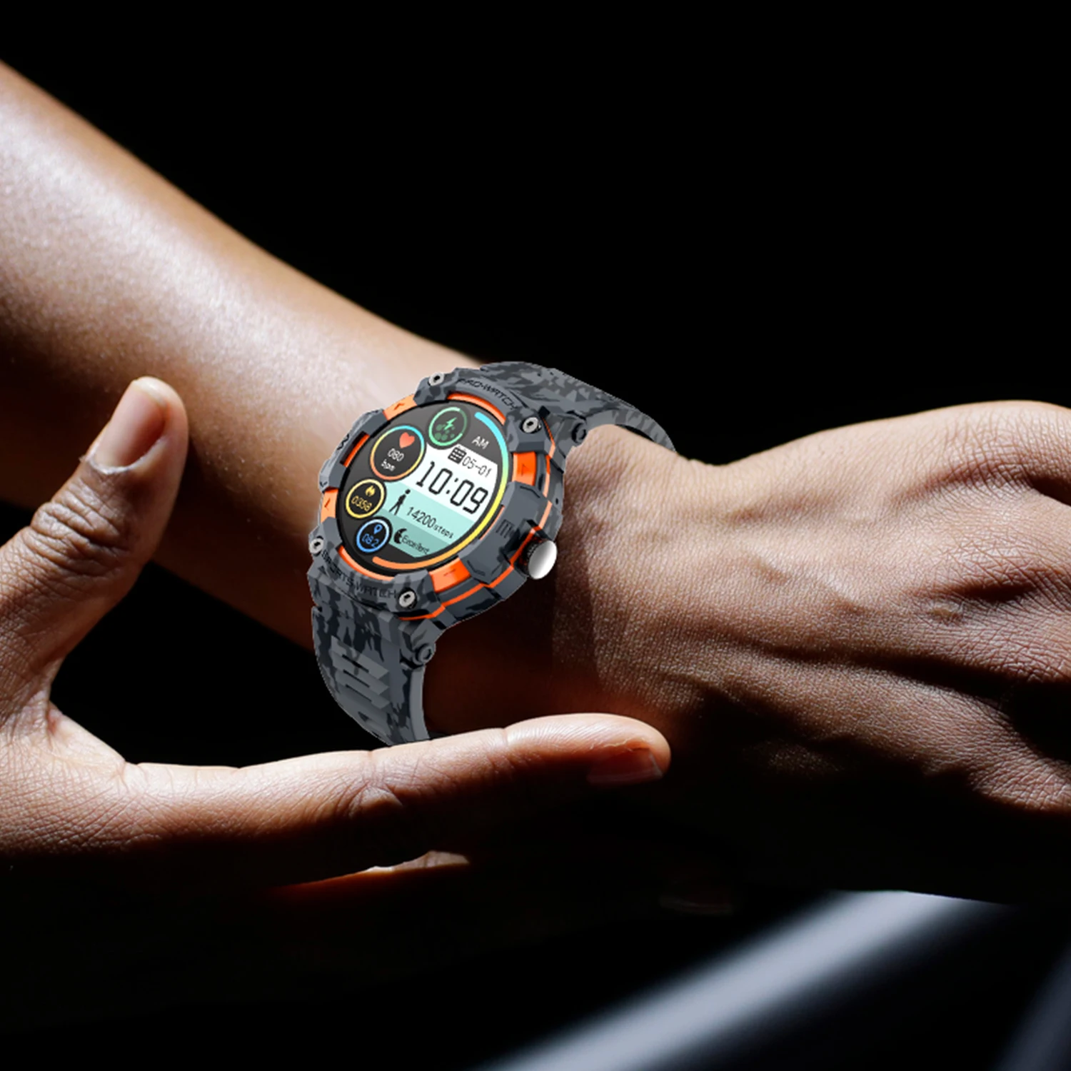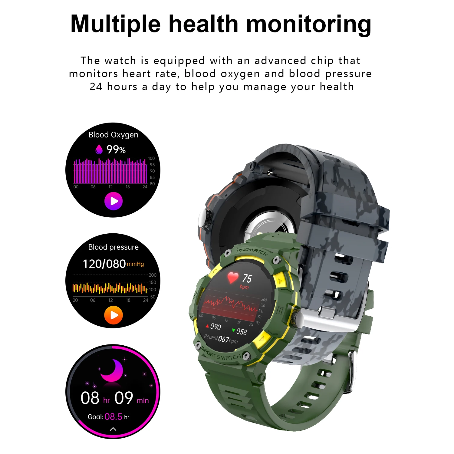 [Notificación inalámbrica de llamadas y mensajes] Simplemente conéctese a través de la aplicación para hacer llamadas inalámbricas y escuchar música en el reloj inteligente. Responda llamadas, Reciba Alertas vibratorias para mensajes y actualizaciones de aplicaciones, todo en su muñeca, eliminando la necesidad de revisar constantemente su teléfono mientras conduce, hace ejercicio, o hacer actividades que dificulten sostener el teléfono. Un reloj inteligente táctico puede mantenerte informado sin distracciones, para que puedas concentrarte completamente en lo que estás haciendo.