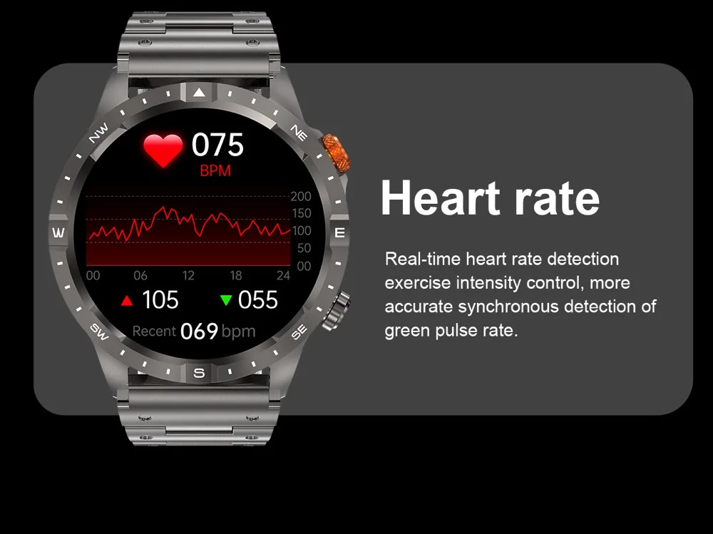 7. Frecuencia cardíaca: HRS3602 Sensor de baja potencia de alta gama (alta precisión).