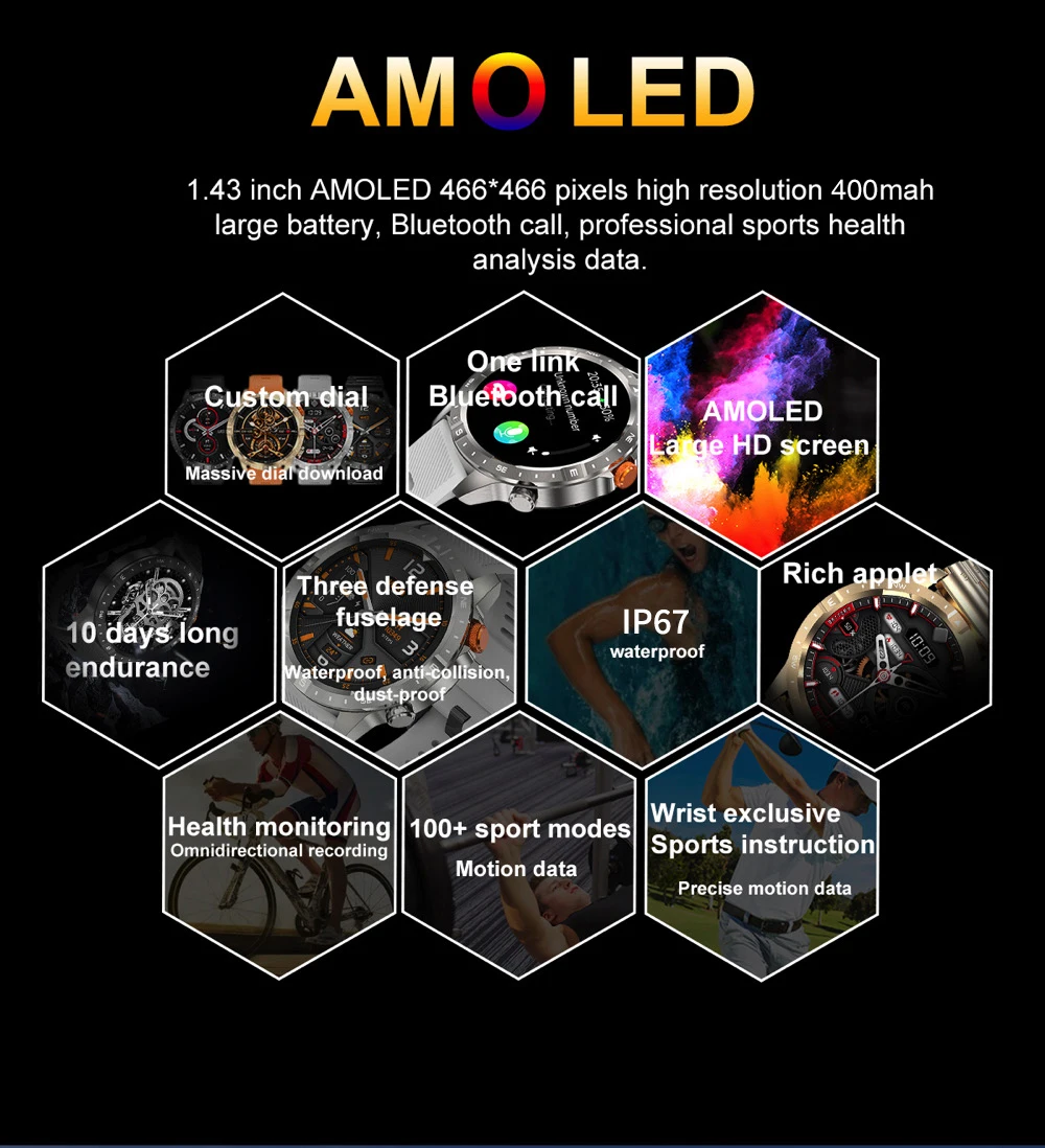 3. Tamaño de la pantalla: 1,43 pulgadas AMLADO, 466*466 px.
