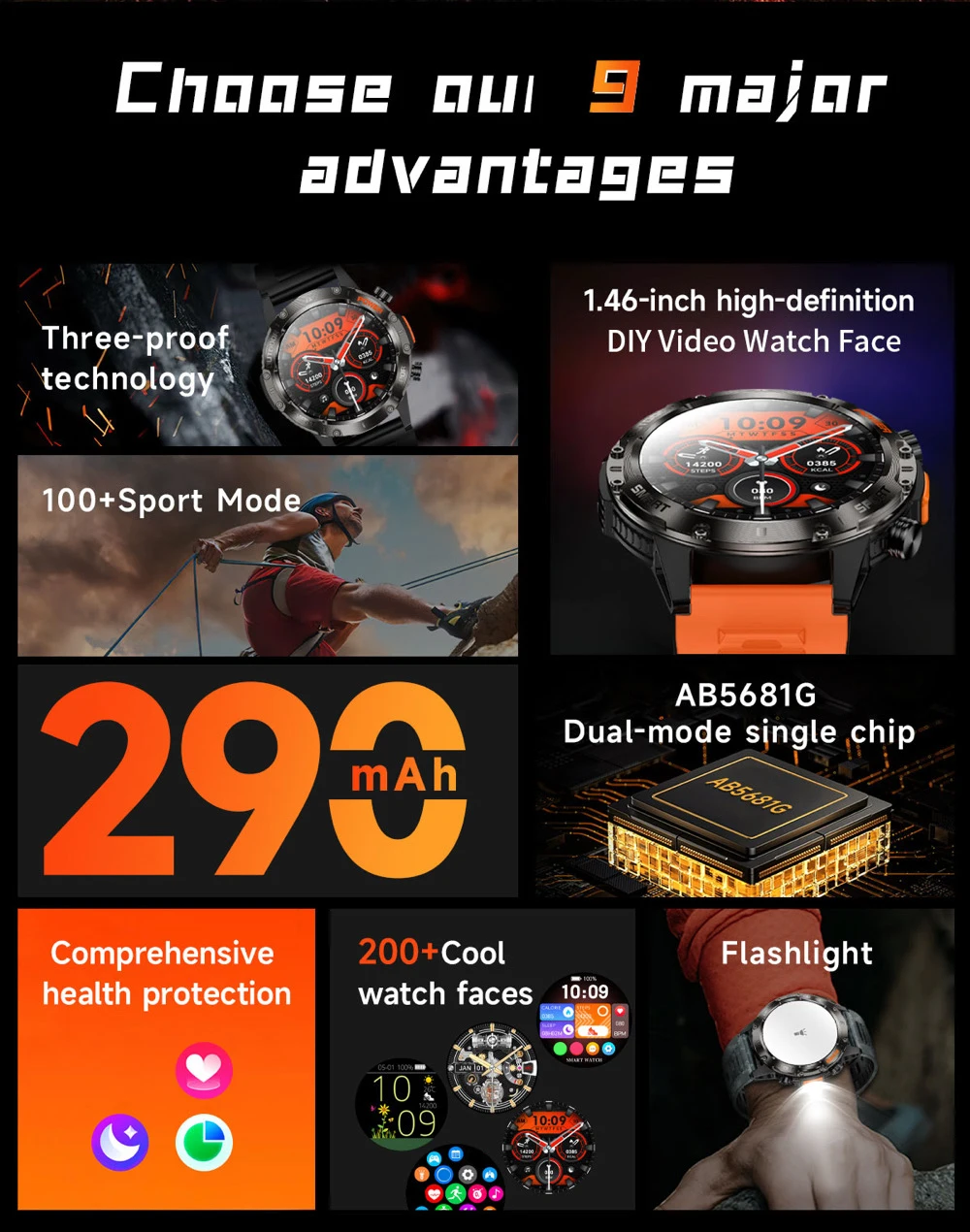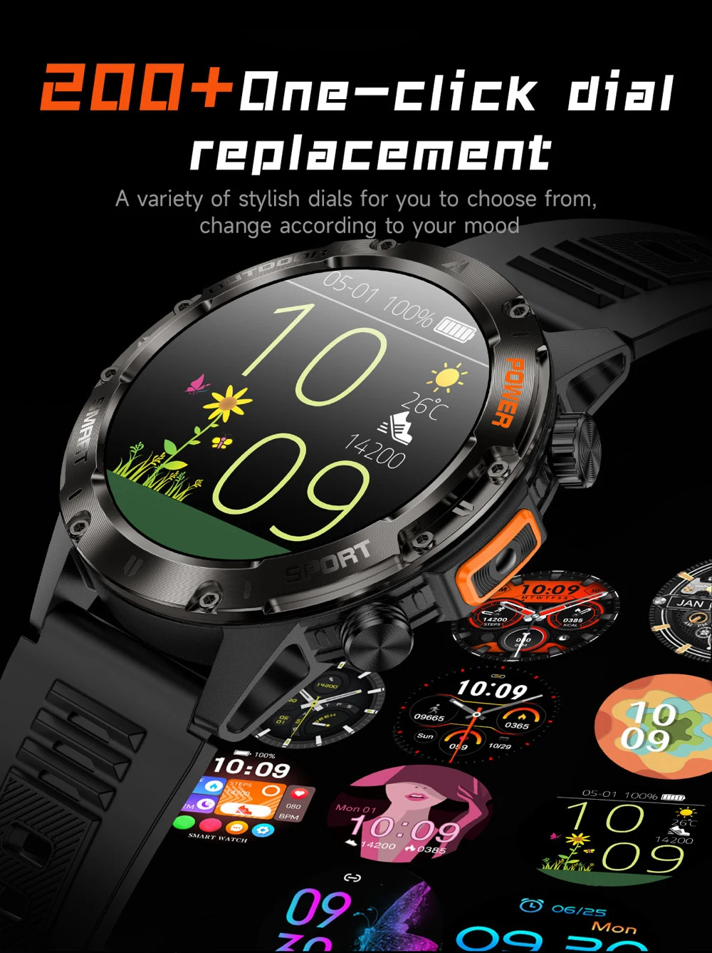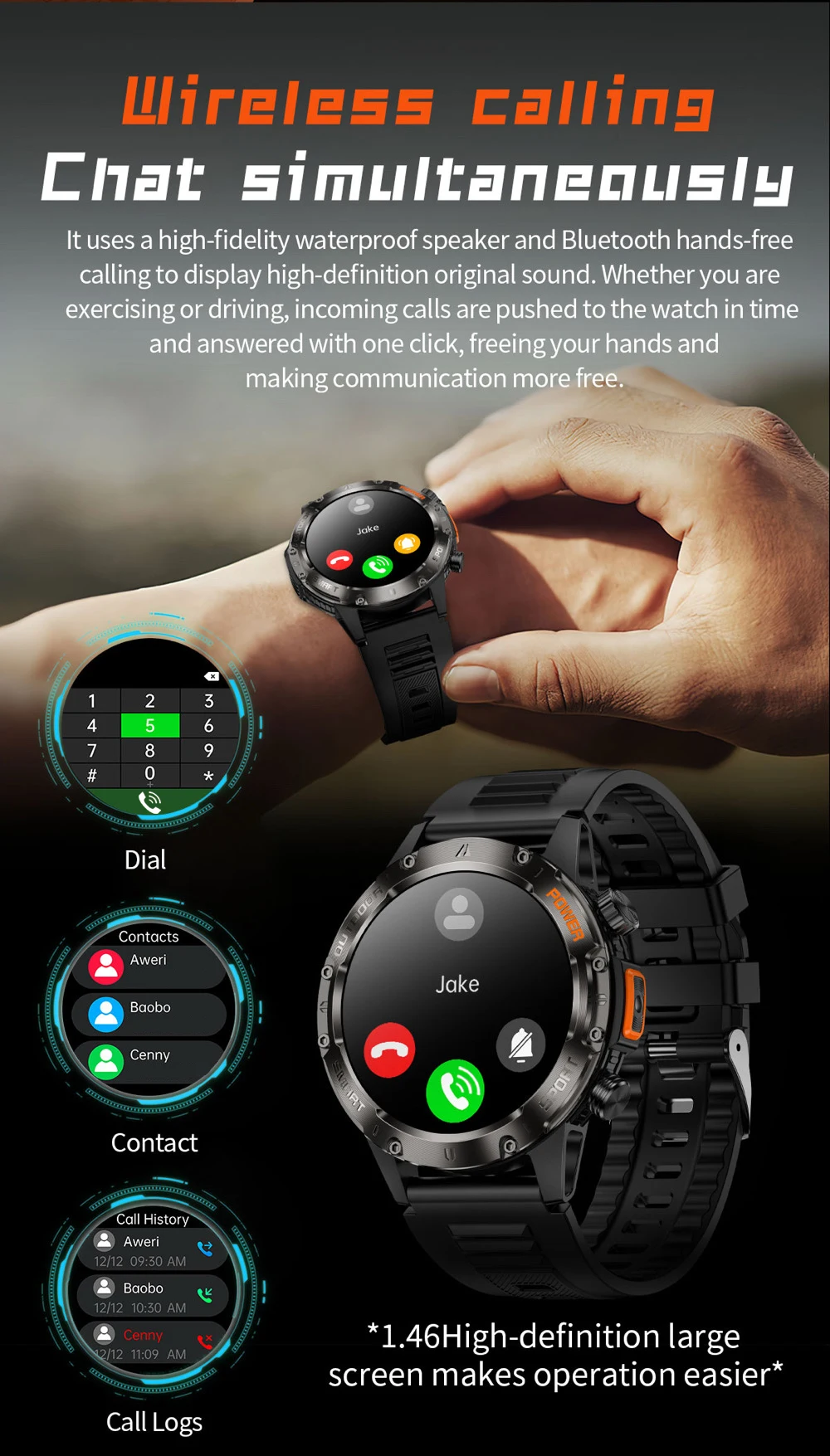 Esfera de vídeo de bricolaje + esfera de vídeo en la nube: aumenta el valor emocional del cliente y mejora la experiencia del producto / Diseño de relación pantalla-cuerpo extremo + conceptos de diseño clásicos y modernos para exteriores + luz LED / dinámica 3D + cepillo alto de 60 HZ / cuerpo de metal, alto brillo, patrón de CD, artesanía múltiple/pantalla TFT de alta definición/enlace de una tecla/llamada bluetooth/más de 100 tipos de modos deportivos/medición de una variedad de frecuencia cardíaca del color de la piel, interacción de interfaz de