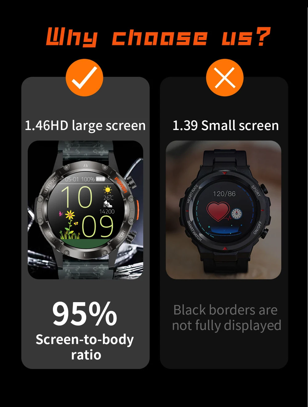 Pantalla: TFT HD de 1,46 pulgadas, resolución 360*360;.