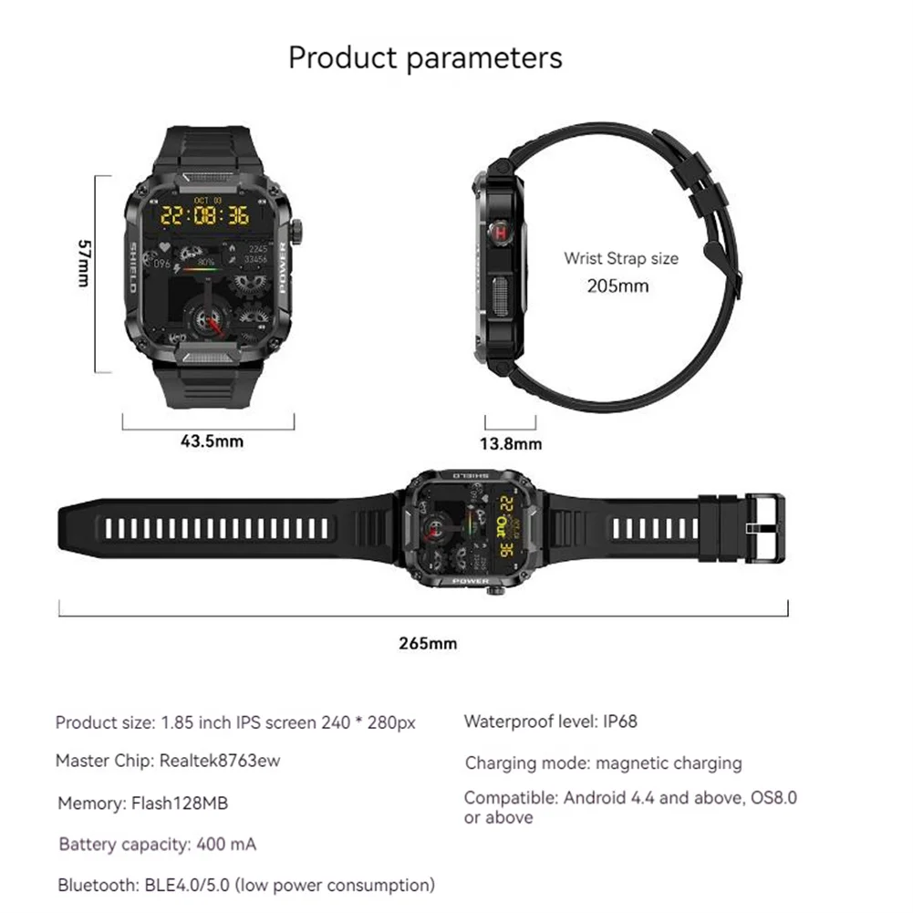 Comprar Reloj inteligente Mk66 para exteriores, pulsera deportiva compatible con Bluetooth, llamadas, reproducción de música, Monitor de ritmo cardíaco, para Android e IOS