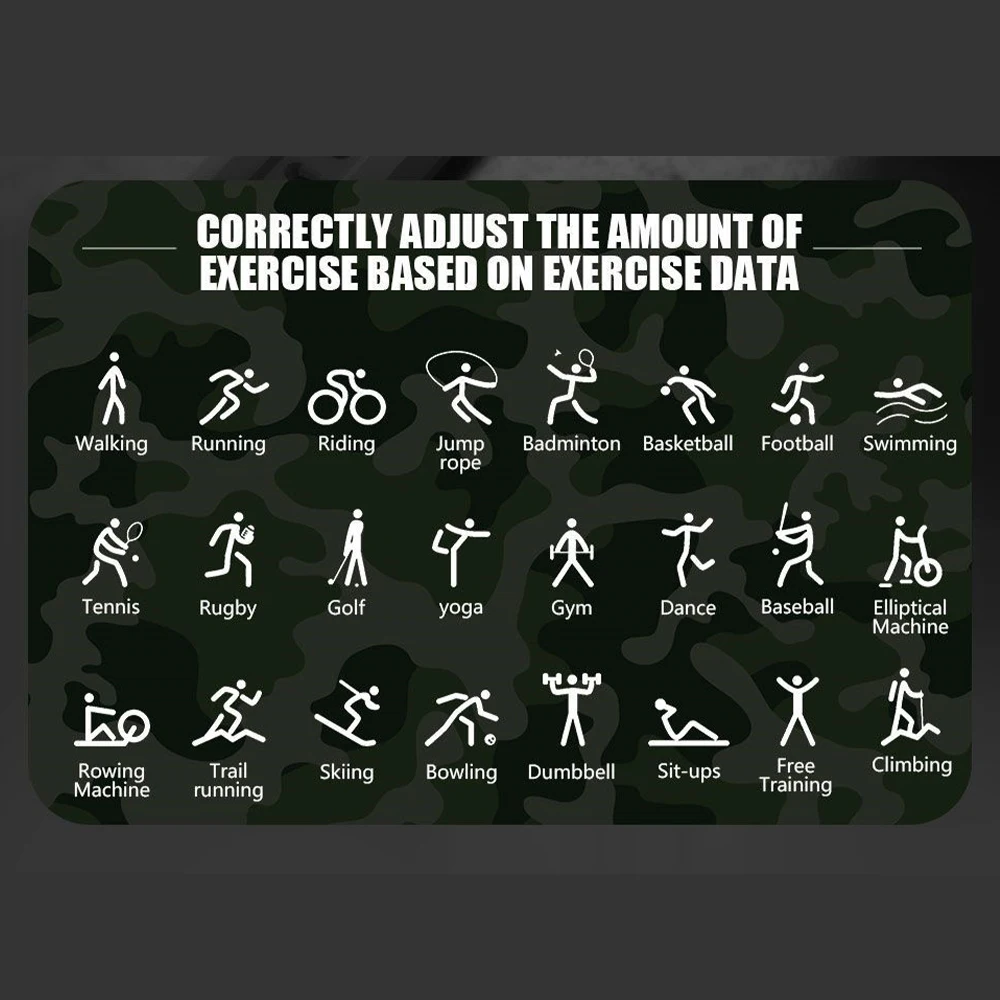 ▸ 24 tipos de deportes: caminar, correr, ciclismo, saltar la cuerda, bádminton, baloncesto, fútbol, natación, tenis, fútbol, golf, yoga, gimnasio, baile, béisbol, máquina elíptica, máquina de remo, correr a campo traviesa, esquí, bolos, mancuernas, abdominales, entrenamiento gratuito, montañismo.