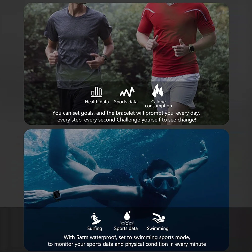 Nuevo reloj inteligente de moda para hombres y mujeres 5ATM IP68 relojes deportivos impermeables reloj de control de oxígeno en sangre de frecuencia cardíaca para hombres