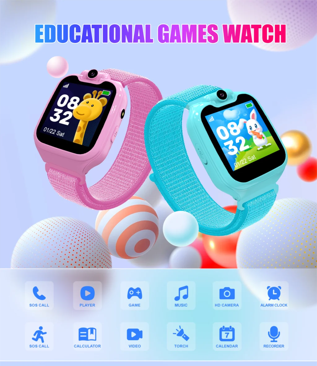 Comprar Reloj inteligente de música para niños, dispositivo con tarjeta TF, 16 juegos, cámara Rotable, conteo de pasos, regalos, 1,54 pulgadas, 2G